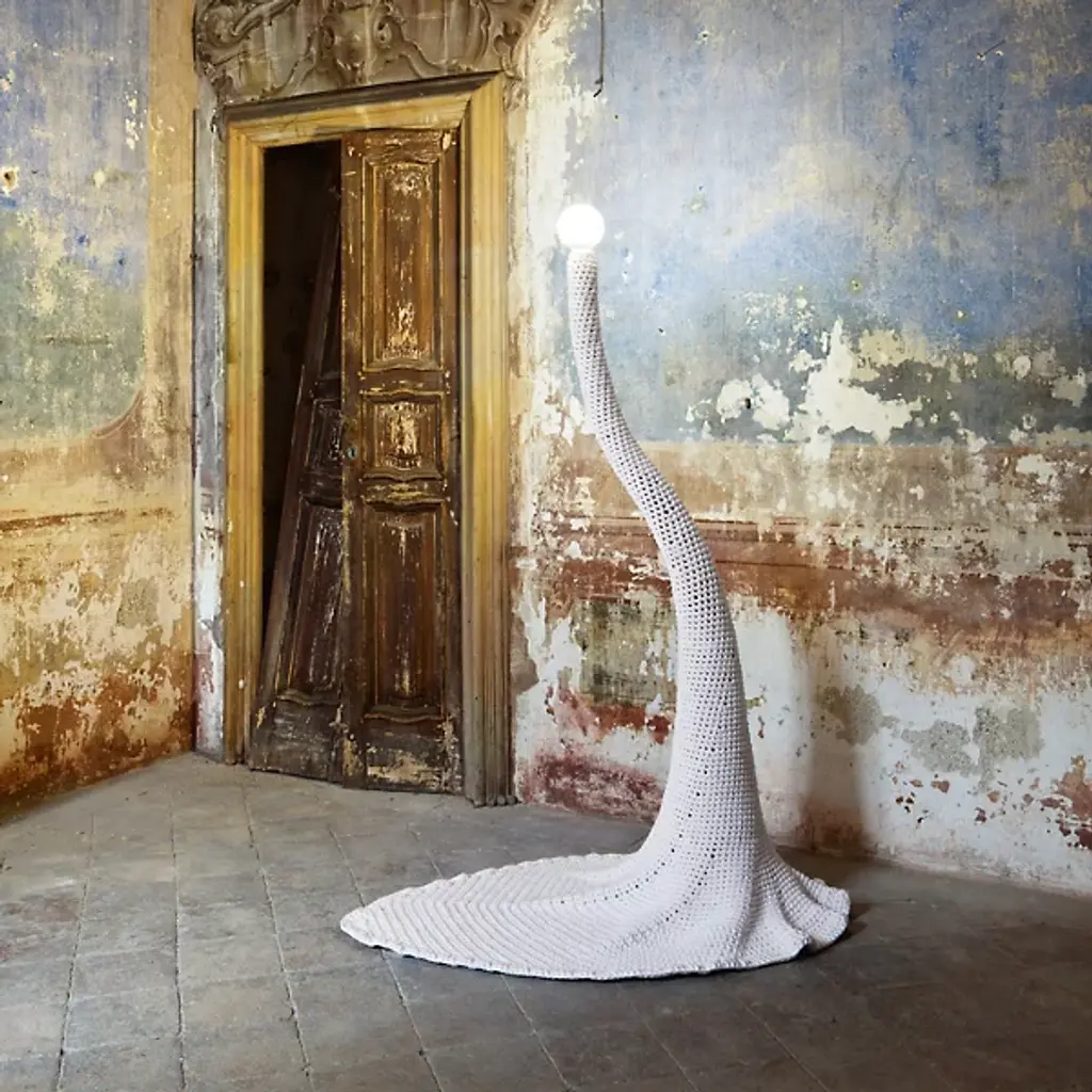 The Penelope Floor Lamp from Fisionarte is a dramatically imagined lighting fixture that pays tribute to the mythological character of Penelope from the myth of Odysseus, described by Fisionarte as “a feminine symbol of intelligence, patience, dexterity, and artful adaptability.” Designed by Domenico Rinaldi, the Penelope Floor Lamp is expertly made in Italy and crafted with a crochet weaving technique, which gives her an intricate texture that is both eye-catching and beautiful.