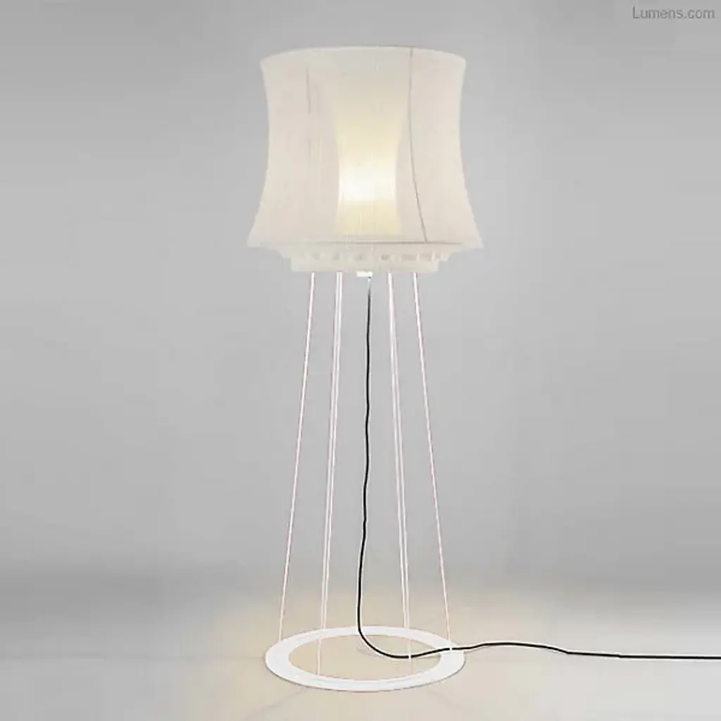 Svelte loops of powder-coated steel hold an oversized cloth-covered shade. Available in a variety of colors to suit your space.