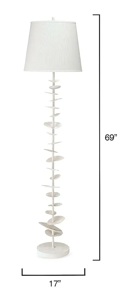 Designed with a sculptural sensibility, this modern floor lamp is crafted of steel with white gesso and plaster in a technique inspired by "Plaster of Paris" from the early 1900s. An off-white linen shade completes the design.