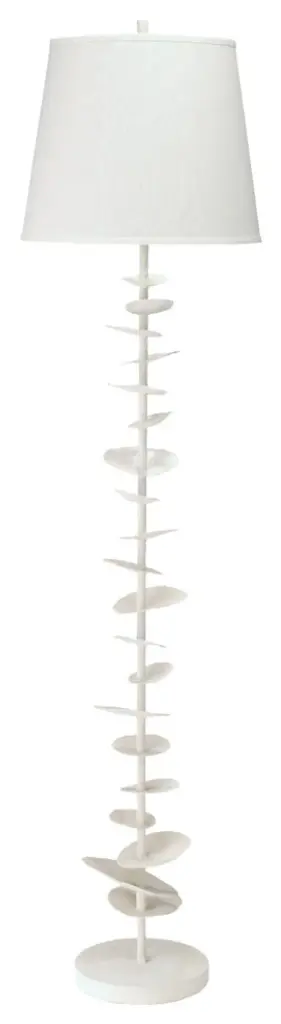 Petals Floor Lamp, White Gesso With Cone Shade, Off White Linen