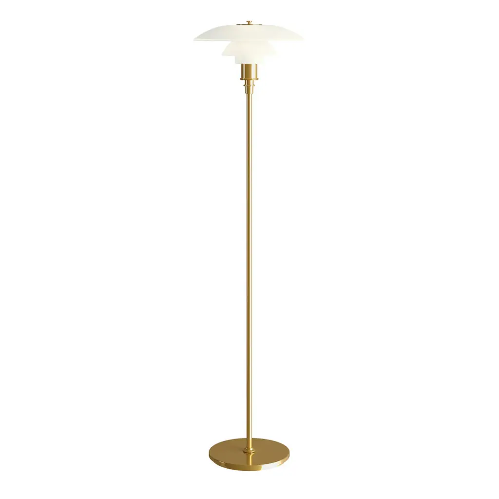Poul Henningsen designed the three-shade system during 1925/1926. The first lights using the system were designed for an exhibition in Paris. His work with Louis Poulsen continued until his death in 1967. Throughout his life, PH sought to create glare-free lighting; aiming to direct light where it was most needed, and creating soft shadows while using incandescent bulbs as a light source. The 3 ½-2 ½ Floor light is a member of the three-shade family and is one of 19 versions available today. Approximately one thousand different models have been produced over the years and consisted of table, floor and wall lamps, as well as a number of different chandeliers, which were very popular in the 30s for lighting private homes with high ceilings. There were countless combination options. The lights were available in different colors, as well as a range of sizes. The first shades were made of metal with a painted undersurface, such as white, gold or silver depending on whether diffuse, warm or cold light was desired. Glass was later introduced for the three-shade system. In addition to the downward-directed light, glass lamps illuminated the room. PH was the first person to pursue a scientific approach to light and use the logarithmic spiral as a basis. By using a design based on the logarithmic spiral he achieved even distribution of light over the entire curve of the shade. This even light distribution, together with the diffuse reflection through the glass, made it possible to control glare and shadow. Each shade reduces the amount of light equally, due to their distance from the light source. The PH light model numbers refer to the shade size. Each top shade had a corresponding set of middle and lower shades. In the pure models, such as the 2/2, the top shade has a size of about 20 cm, with corresponding lower shades. PH 3 ½-2 ½ Floor consists of an approximately 35 cm top shade with lower shades. These hybrid models were introduced due to the desire to hang pendants at lower heights. The system was also used for floor, table and wall lamps. PH 3 ½-2 ½ Floor in its current form was introduced in 2002. Download PH 3.5/2.5 Floor Lamp Brochure
