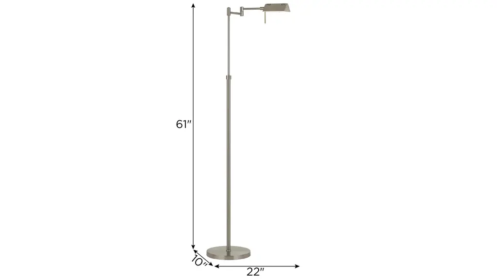 Update your decor with this Pharmacy Adjustable LED Floor Lamp. It features a slim pole lamp design with adjustable arms. It has an integrated 3000K led light with a 780 Lumen Output.