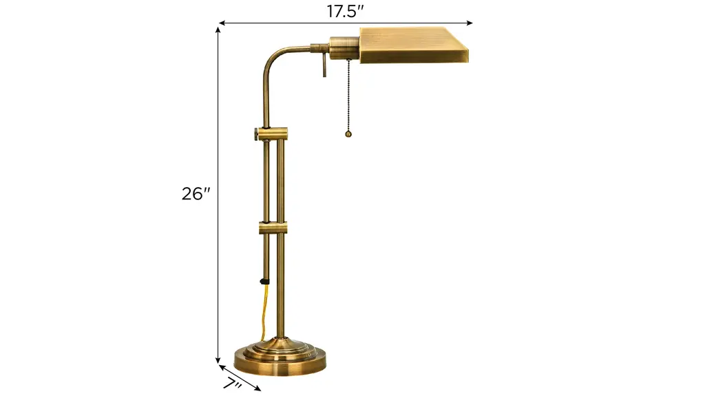This elegant Pharmacy Floor Lamp with Adjustable Pole will make a great addition to any livingroom or office space. It features an adjustable neck and arm for optimal control of height and light direction. With it's slim frame and minimalistic design, this versatile lamp is a great optim for small and cramped spaces.