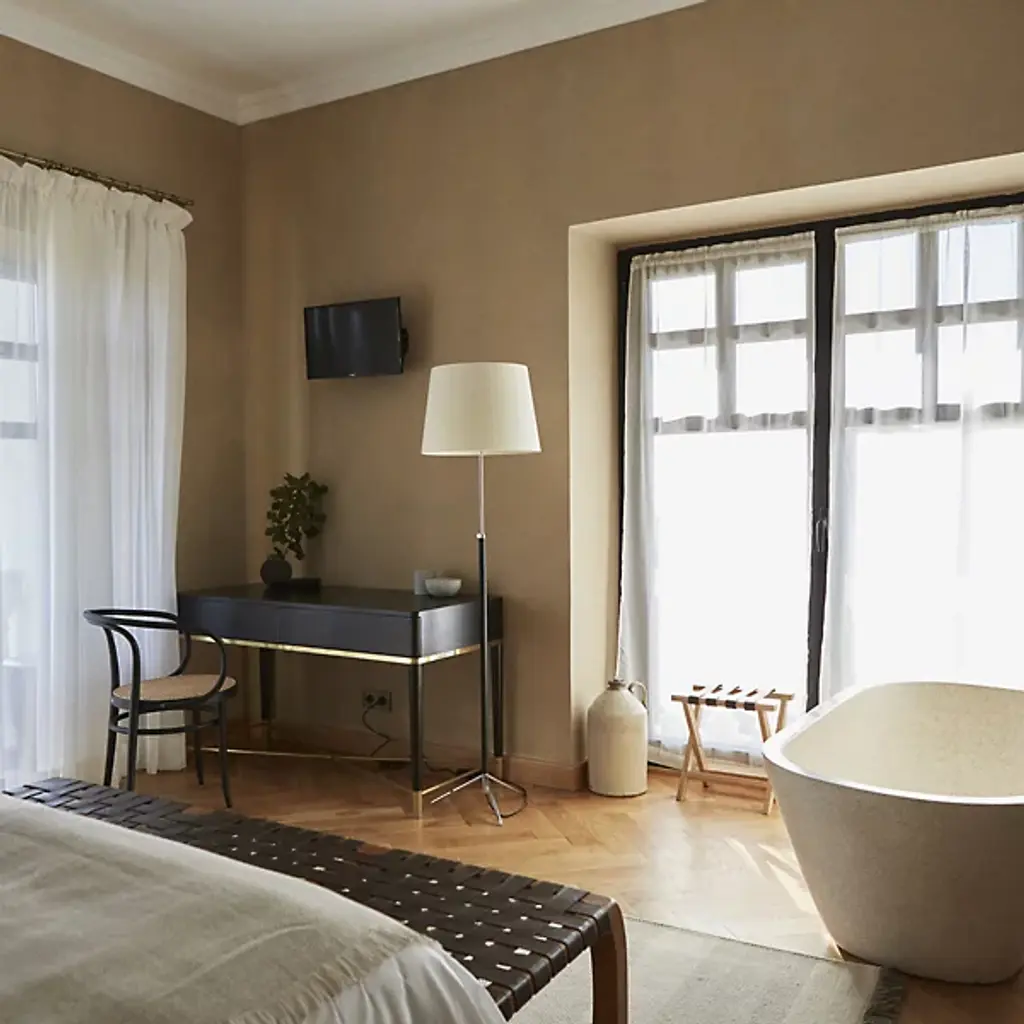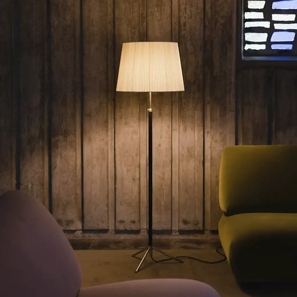 The Pie de Salon, a 1963 Jaume Sans design, is what you think of when you think of floor lamps. The Pie de Salon by Santa & Cole has an adjustable, leather-covered (Remember those?) shaft and a stitched, parchment shade.