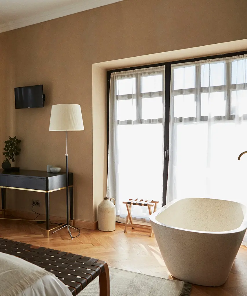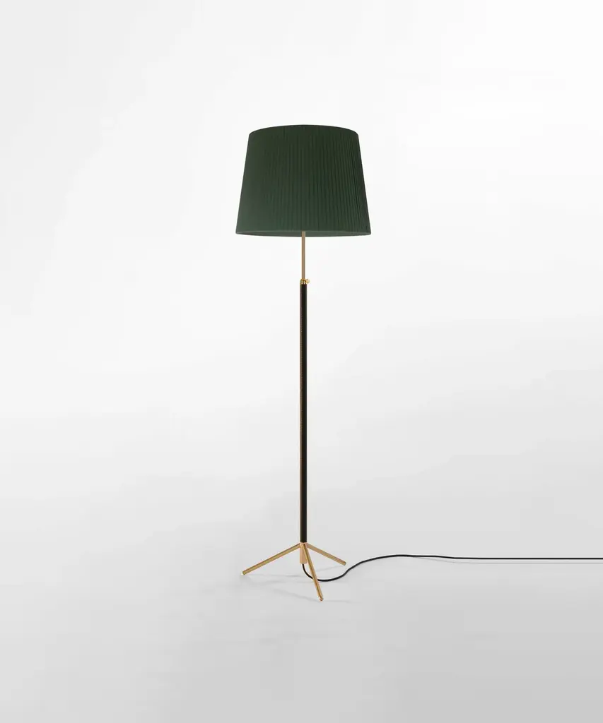 Jaume Sans was a renowned Catalan surrealist sculptor and painter. He was also a member of the artistic association ADLAN which included among its members Picasso, Dalí, Miró, and Calder, all acquaintances of the GATCPAC architects with whom they shared their social venue on Passeig de Gràcia in pre-Spanish Civil War Barcelona. Sans focused on the design of furniture for his own household, which is how the remarkable Pie de Salón or Peana Molina lamps were created, and later edited by Santa & Cole. A sleek reinterpretation of traditional symmetrical lamps, with a chrome shaft. The stem of the lamp is adjustable and is leather-covered for a luxurious feel, opening up into a tripod base that allows the cable to easily go through. A perfect example of industrial craftsmanship. It features three distinct shades in three different materials and eight color options that exude timeless elegance Produced by Barcelona-based lighting purveyor, Santa & Cole.