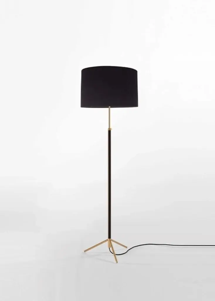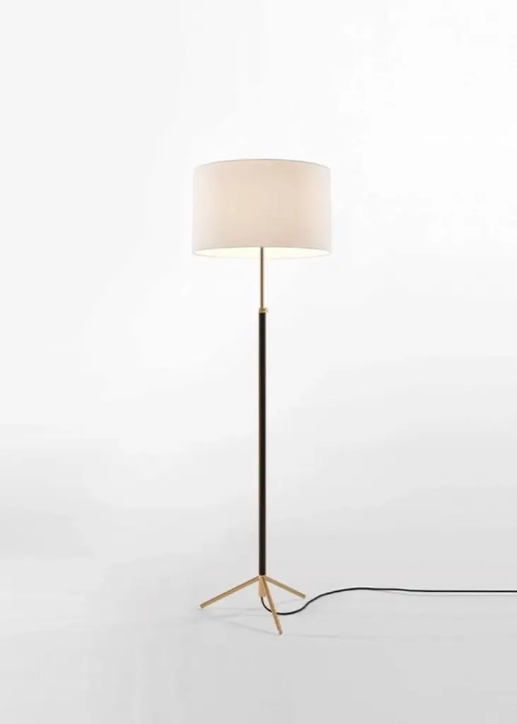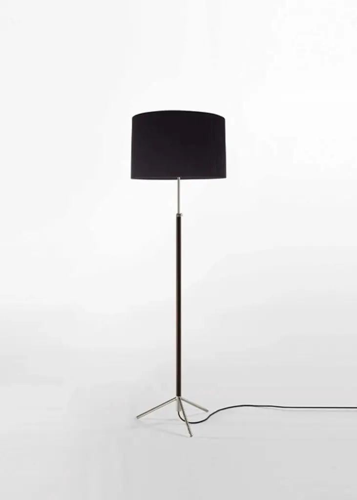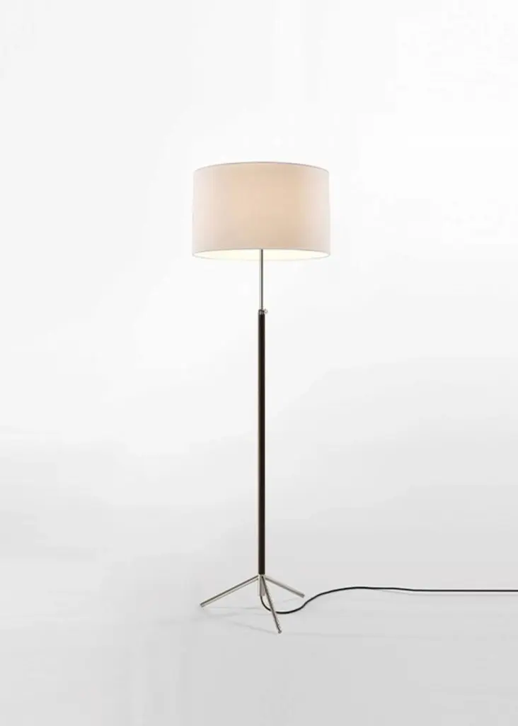 Reinterpreting traditional lamps. Jaume Sans was a renowned Catalan surrealist sculptor and painter. He was also a member of the artistic association ADLAN that included amongst its members Picasso, Dalí, Miró and Calder, all acquaintances of the GATCPAC architects with whom they shared their social venue on Passeig de Gràcia in pre-Spanish Civil War Barcelona. Sans focused on the design of furniture for his own household, which is how the remarkable Pie de Salón or Peana Molina lamps were created, and later edited by Santa & Cole. A sleek reinterpretation of traditional symmetrical lamps, with a chrome shaft. The stem of the lamp is adjustable and is leather-covered for a luxurious feel, opening up into a tripod base that allows the cable to easily go through. A perfect example of industrial craftsmanship. It features three distinct shades in three different materials, and eight colour options that exude timeless elegance.
