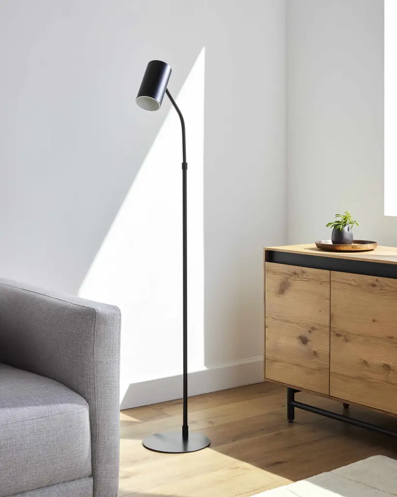 Collection: Pielavesi Colors: Black, White Material: Body: Iron / Base: Iron / Shade (Outside): Metal / Shade (Inside): Metal Styles: Southwestern Made In: China Lighting Type: Accent Floor Lighting Base: Iron Base Color: Black Shade Material: Metal Shade Color: White, Black Cord Length: 8' Switch Type: Rocker Number of Bulbs: 1 Socket Type: E-26 Bulb Wattage: 40W