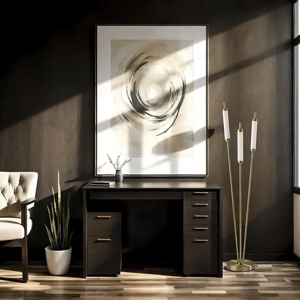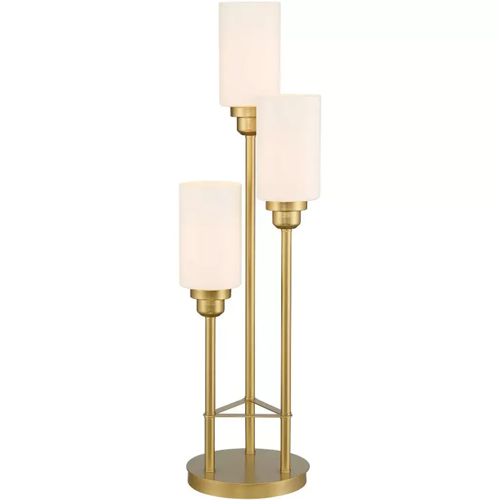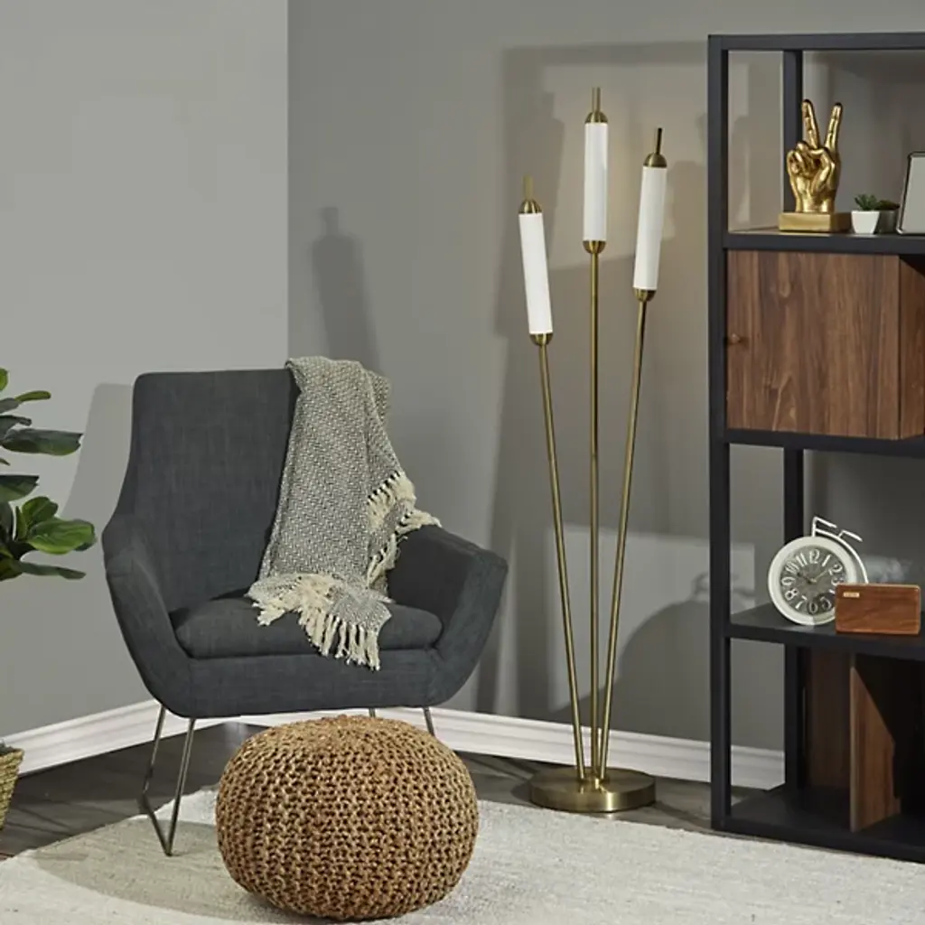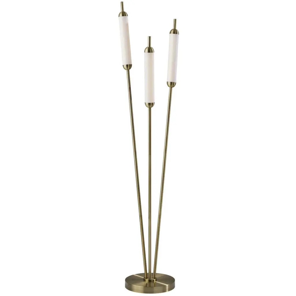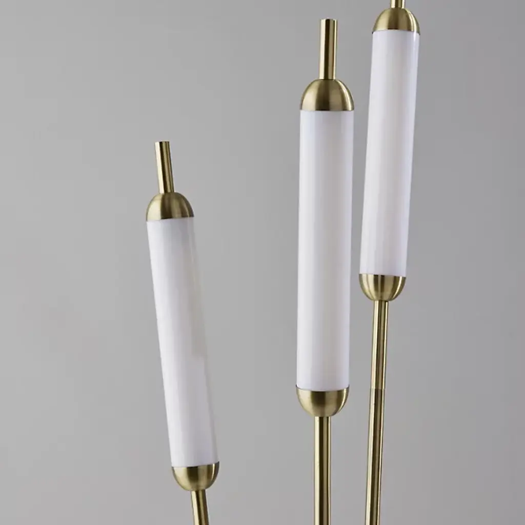 Create a distinctive statement with the blend of materials and sprouting design of the Pierce LED Floor Lamp from Adesso. Sporting a round base in an elegant finish, the lamp features 3 long and slender poles, each leading to a frosted acrylic cylindrical shade evocative of the cattail plant. Its integrated LEDs can be controlled by a touch switch located on each shade, putting brightness level options a finger tap away.