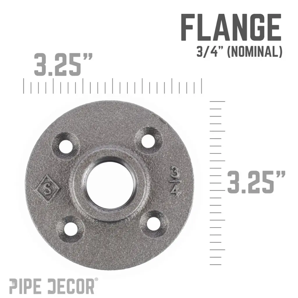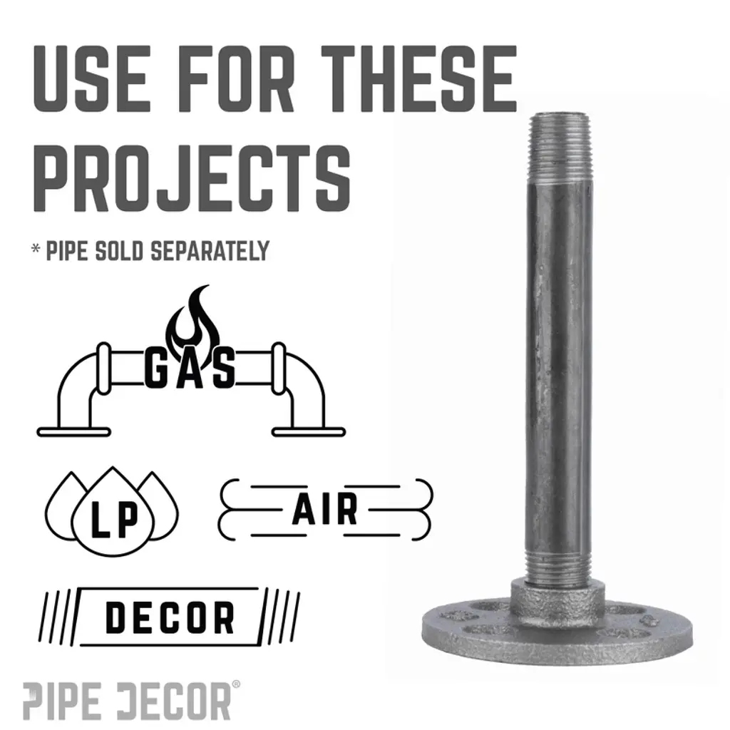 FLOOR FLANGES: The workhorse of pipe decor. These flanges work as feet, brackets or couplings in a pinch. Sturdy cast iron they will give you the support your project needs. AUTHENTIC INDUSTRIAL PIPE FITTINGS: These are genuine industrial pipe fittings that will stand the test of time. You will know Pipe Décor parts and accessories when you hold them. Beauty and beast. Strength and style. This is real industrial pipe for your decoration and designs. Accept no substitutes. Extra pieces and accessories are available for your custom fixture projects and expansions. Plug and play as desired. CREATE CUSTOM PIPE FIXTURES AND FURNISHINGS: Create a one of a kind shelf, table, lamp, or a piece of art that perfectly fits your space. CLEANING AND SEALING: Since these are unfinished cast iron components, industrial grease applied to each fitting and pipe in production to prevent rusting. remove the grease can with a cloth and any household cleaner. Seal the pipe any polyurethane spray to protect it from rust and scratches. WE ARE HERE TO HELP: Please reach out to us if you have any questions or issues of any kind. We stand by our products and are committed to our customers. We want you to be satisfied with your purchase and hope that you share your unique creations with us and your friends.