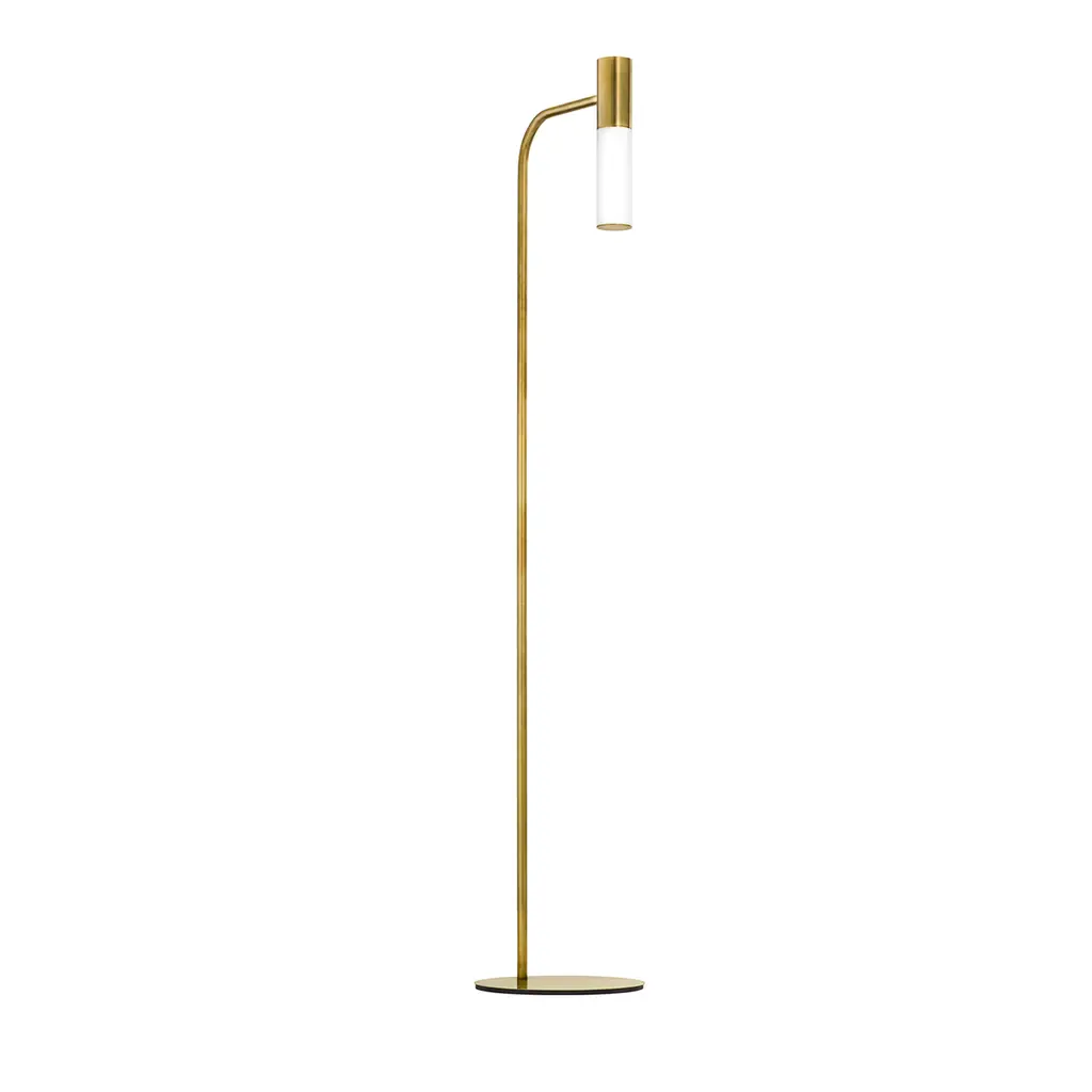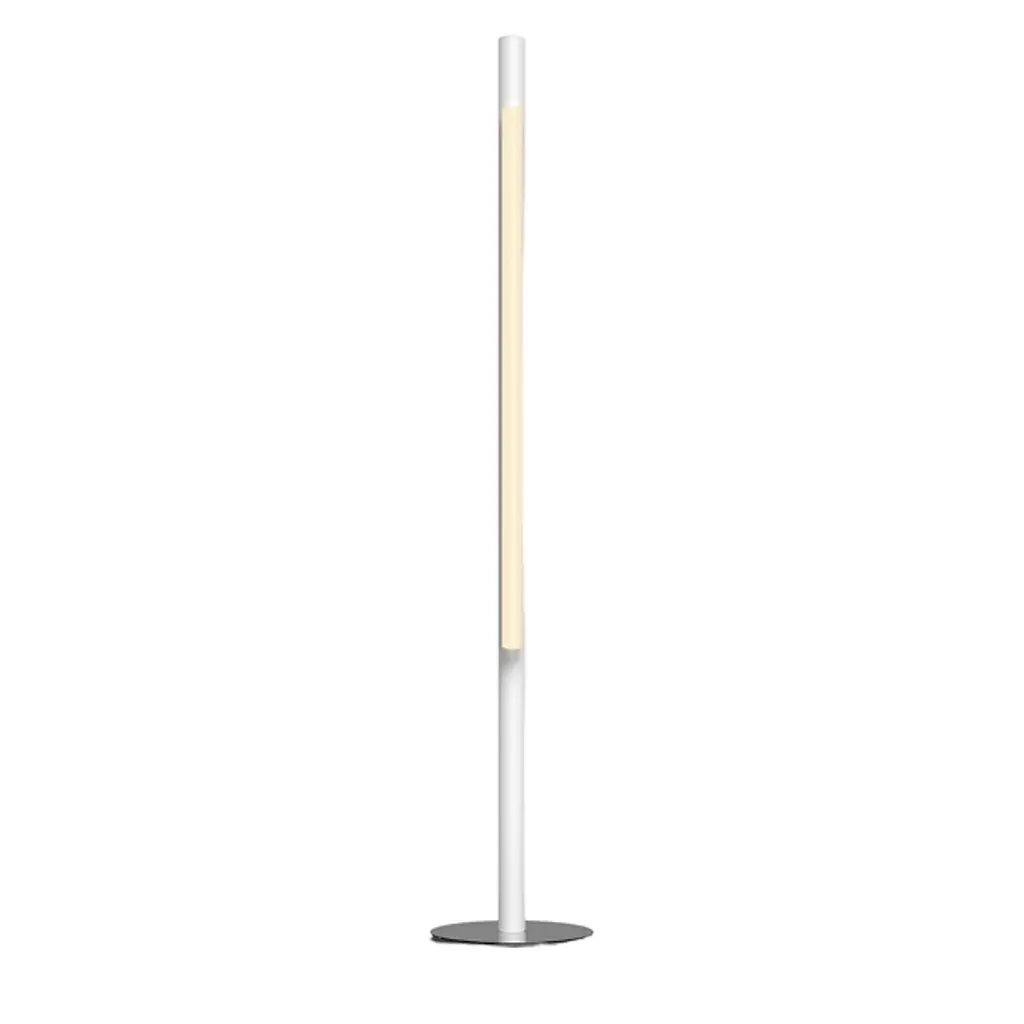 The Pipeline 125 LED Floor Lamp was designed by Caine Heintzman in 2017, and is made in Canada. A sleek and slim aluminum tube is paired with an acrylic diffuser that houses a linear LED and an aircraft cable. This minimal floor lamp adds an elegant touch and direct illumination to modern living rooms, bedrooms, and offices.