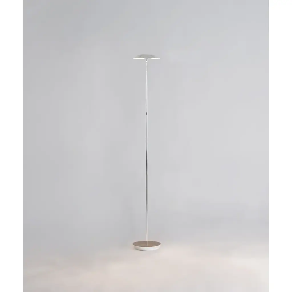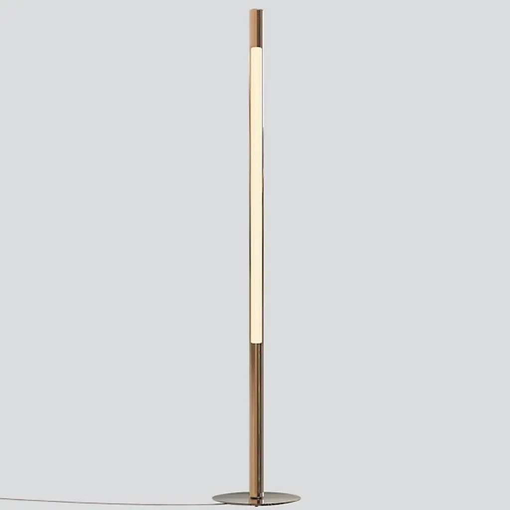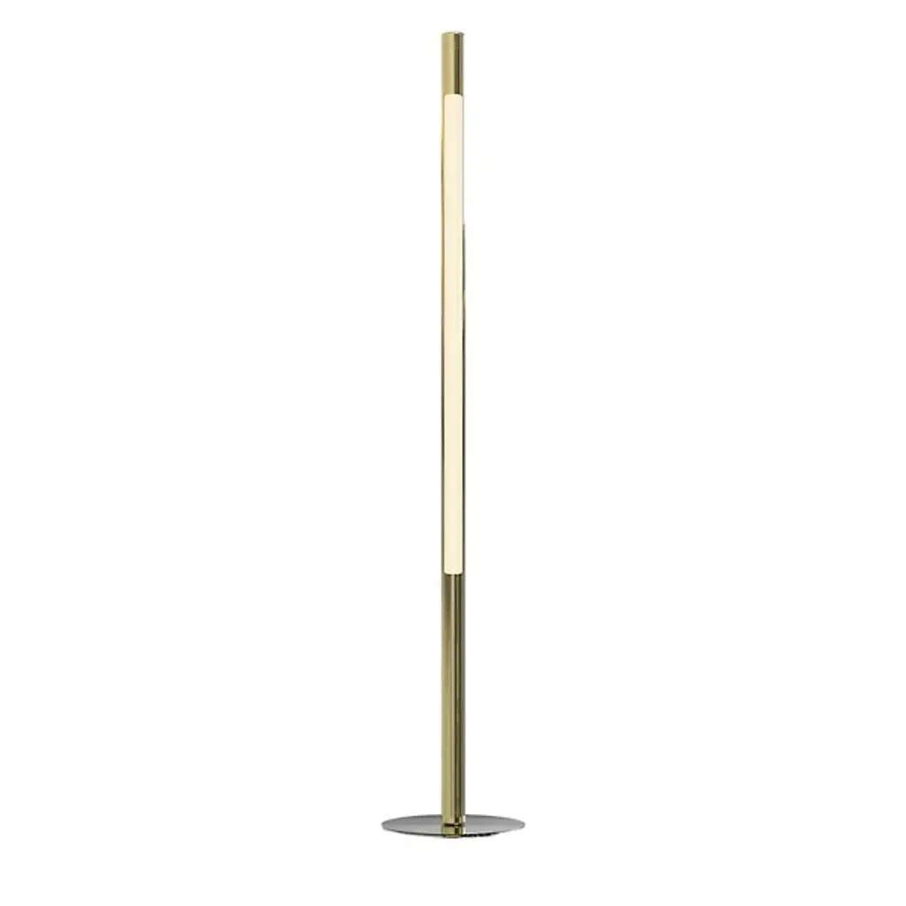 The Pipeline 125 LED Floor Lamp was designed by Caine Heintzman in 2017, and is made in Canada. A sleek and slim aluminum tube is paired with an acrylic diffuser that houses a linear LED and an aircraft cable. This minimal floor lamp adds an elegant touch and direct illumination to modern living rooms, bedrooms, and offices.
