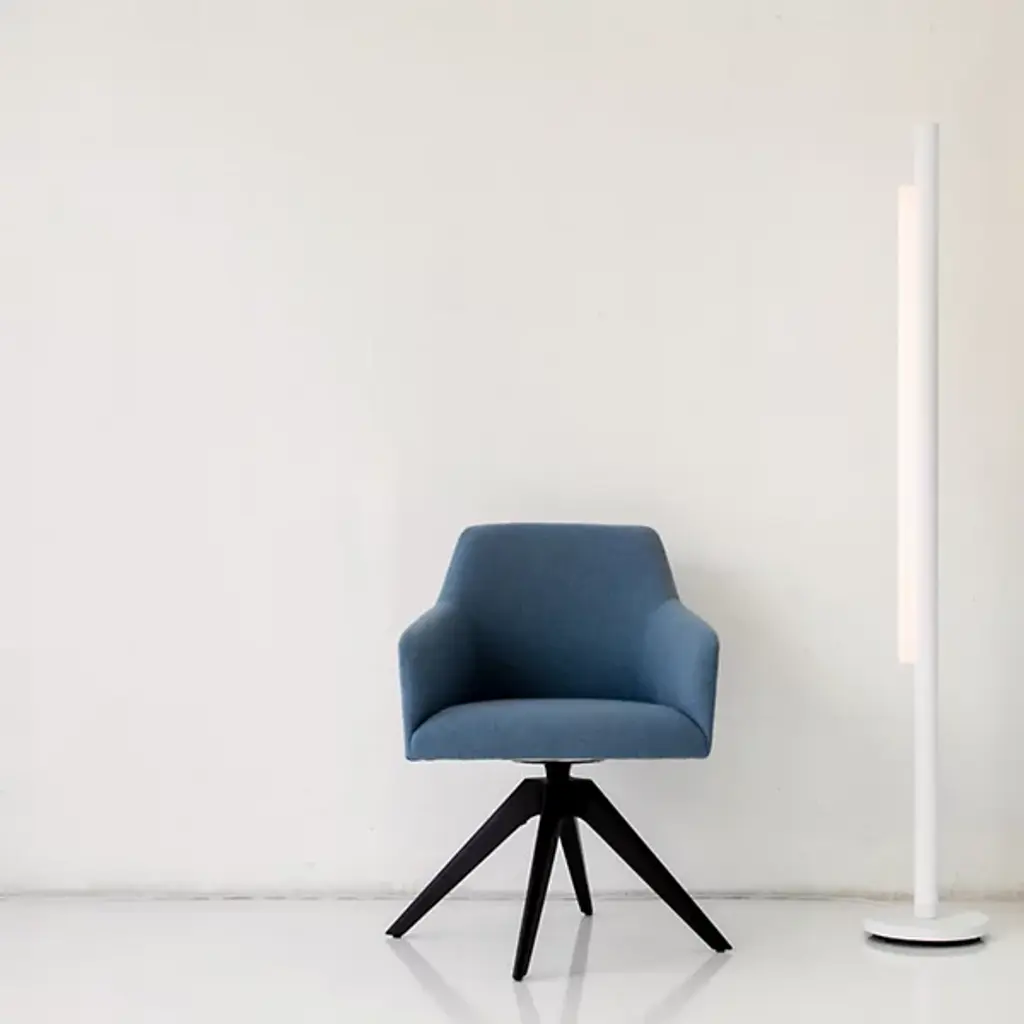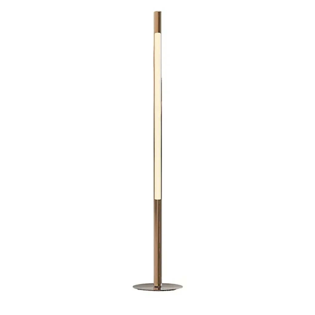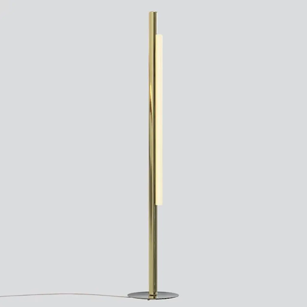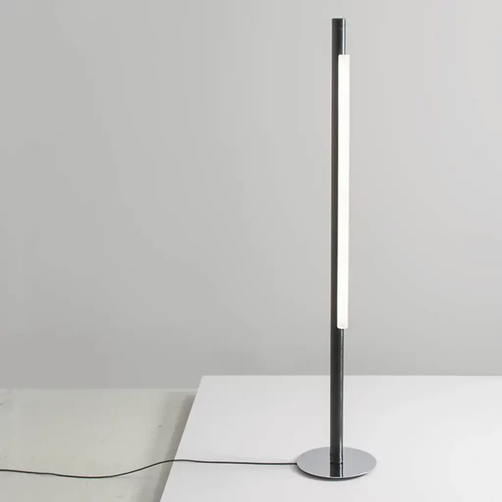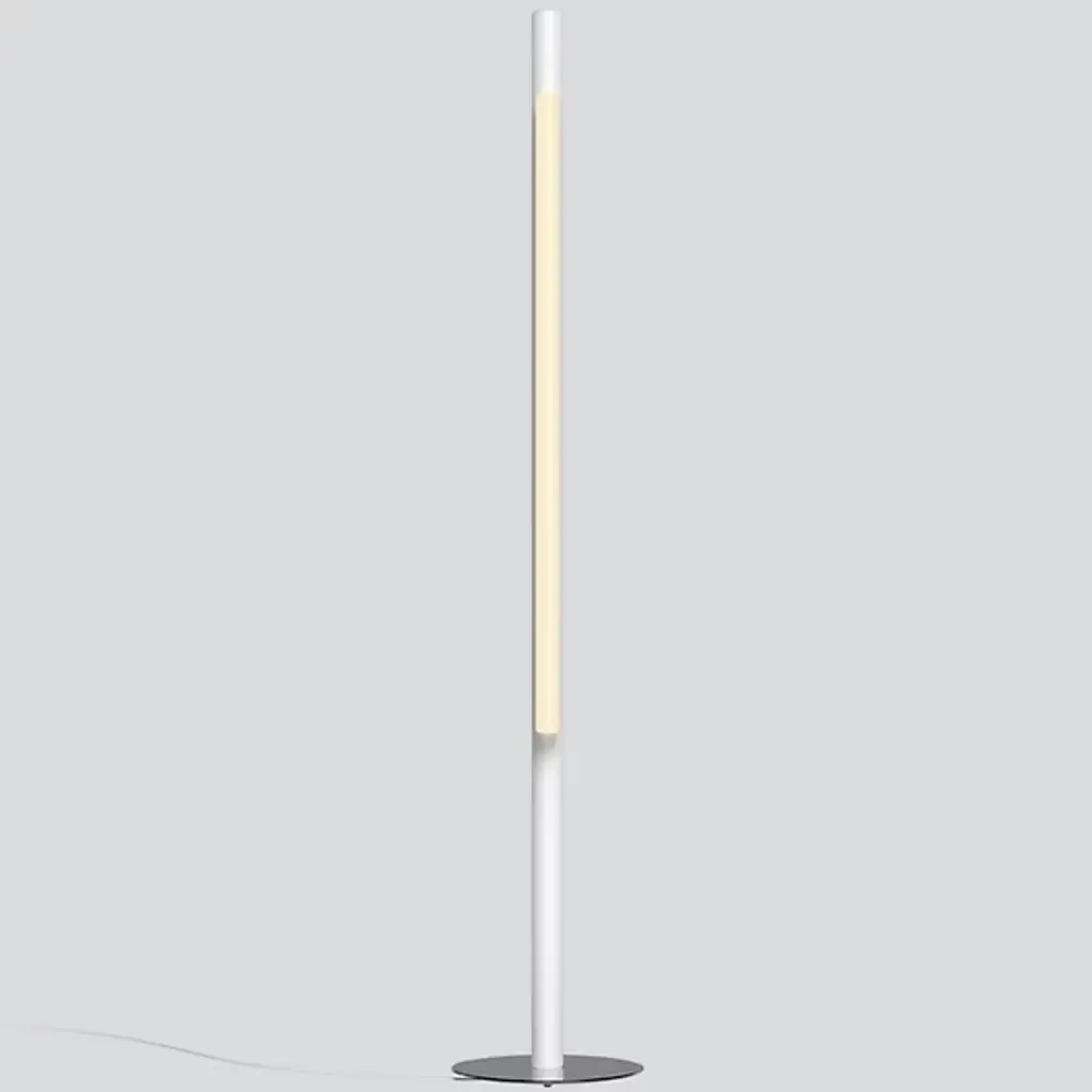 The Pipeline 125 LED Floor Lamp was designed by Caine Heintzman in 2017, and is made in Canada. A sleek and slim aluminum tube is paired with an acrylic diffuser that houses a linear LED and an aircraft cable. This minimal floor lamp adds an elegant touch and direct illumination to modern living rooms, bedrooms, and offices.