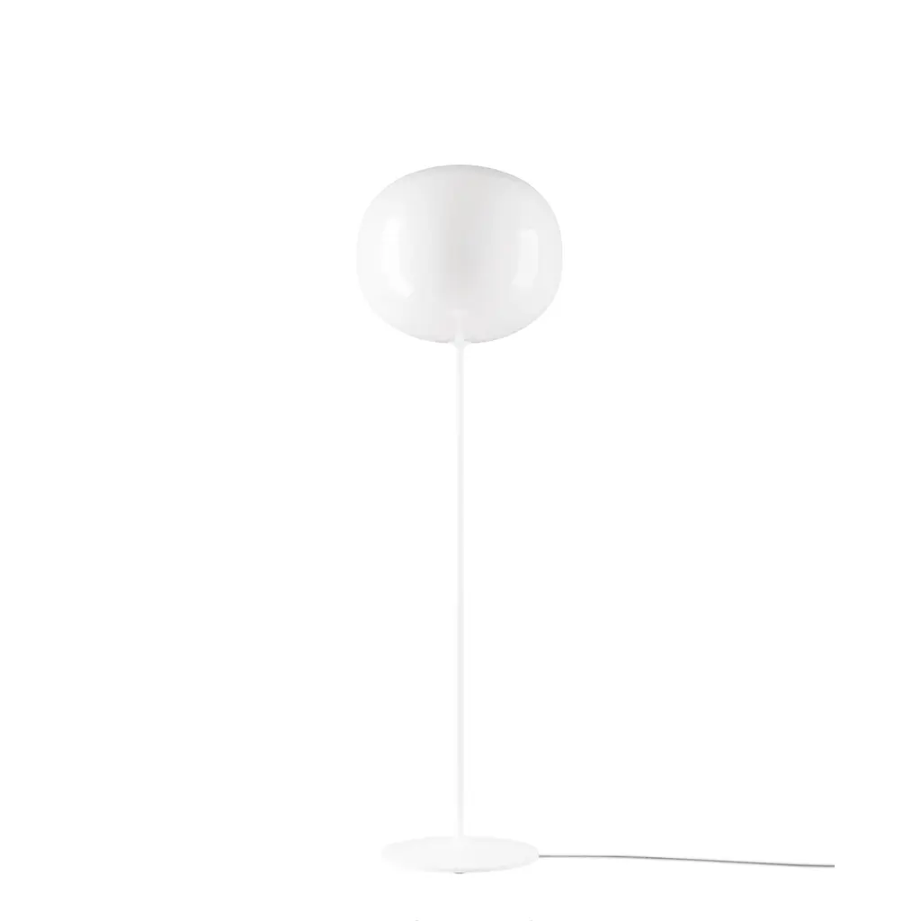 A family of lamps: suspended, for a coffee table and with a metal structure, and the most recent floor version of the lamp is available in two heights: 130 and 160 cm. The distinctive trait is the shape of the slightly elliptical transparent diffuser, which is characterised by a multi-faceted surface, both inside and out, which creates a rich tapestry of reflections.