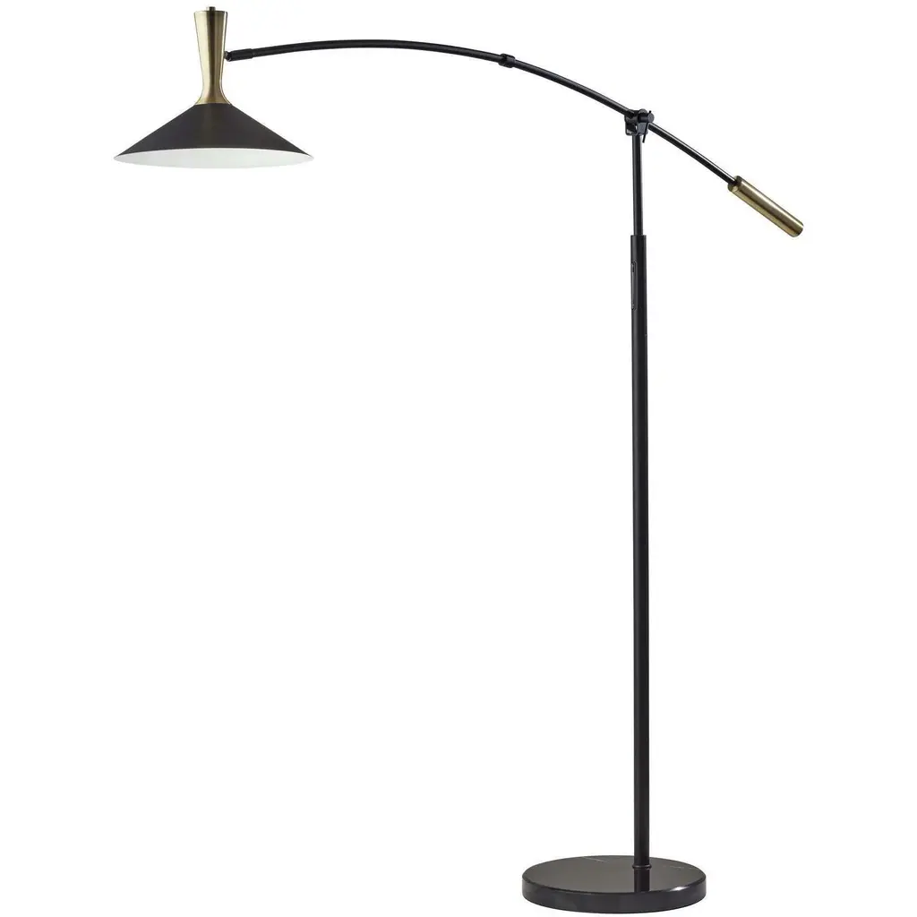 Durable Metal ConstructionBrushed Metal FinishTwo Tone Colored ShadeLittle to No Assembly RequiredWeighted base for added stabilityHeight can be adjusted from 55 to 66 inches