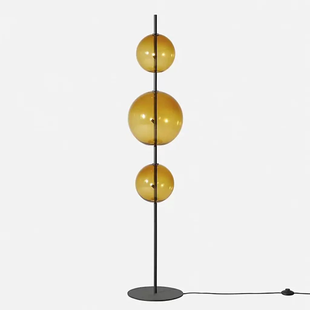 Bring bold, ultra-modern appeal to interiors with the Point LED Modular Floor Lamp from CITTA. An Alex Buckman design set atop a slim circle base, it sends a single slender stem of modern steel upward, piercing three globe shades of hand-blown glass that surround small, strong LED lamps; the two upper and lower globes are smaller than the central one, adding a touch of artistic contrast. The lamping is controlled by an integrated switch set atop the steel column, while the tiny imperfections in each hand-cast shade lend a rustic note to the otherwise cutting-edge design.