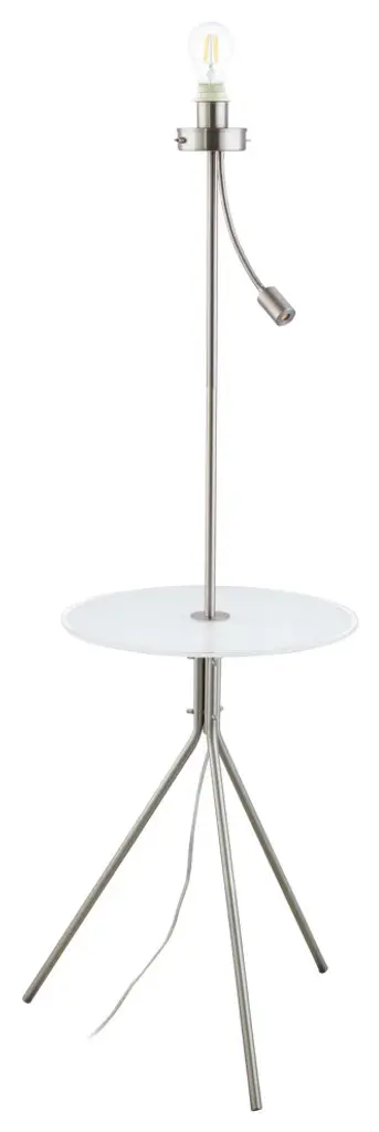 Eglo''s Policara Family exudes urban style. This 1-bulb floor lamp inmatte nickel finish features a white-finished shade and an attached table. Fine in style withthe tripod stand design, the floor lamp will pull together the interior aesthetic of the room andadd contrast. Great for bedroom, office, living room, game room, etc.Features:Floor lamp with white tableTransparent cordMounting hardware is includedDownlightWarranty: 1 YearBulb Type: IncandescentNumber of Bulbs: 1Bulbs Included: NoUL Listed: Bulb Wattage: 60Hardwire or Plug: Plug In