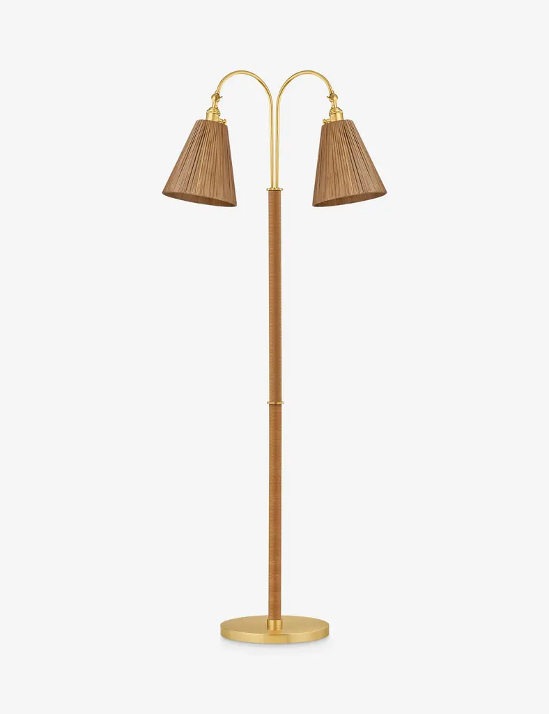 The Polly Floor Lamp exudes timeless elegance with its two scalloped shades, casting a soft, comforting glow that enhances any room's ambiance. The lamp's asymmetrical base adds a touch of artistic flair, creating a multi-level effect that beautifully bridges classic and contemporary styles. Perfect for entryways, bedrooms, or living spaces, the Polly Floor Lamp offers a refined and versatile design that elevates any setting with its unique and stylish presence.