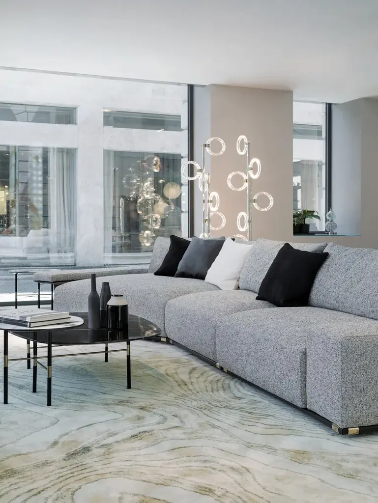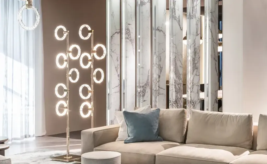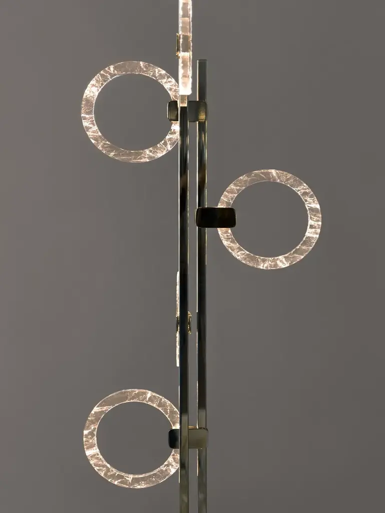 Polo is a lamp made with metal structure in polished champagne finish. Decorative rings methacrylate in transparent finish.WEIGHT 25 Kg BULB INFORMATION 2 LED X3 - 36 WATT, 2700K, LUMEN 3612Different voltage on requestCERTIFICATION CE