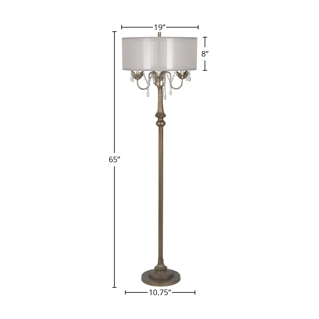 Introducing the Polyresin 65" Floor Lamp, a striking combination of vintage allure and contemporary elegance. Its antique silver resin lamp base exudes a timeless charm, adding a touch of sophistication to any living space. Crowned with a graceful grey organza shade, this lamp casts a soft and ethereal glow, creating an ambiance of tranquility and refinement. Setting up this piece is a breeze, as the Polyresin Floor Lamp seamlessly integrates with a standard 120-volt power supply, ensuring a hassle-free addition to your decor. Crafted from high-quality resin, the lamp base promises durability, gracing your living spaces with enduring beauty for years to come. Experience the freedom to personalize the lighting with E26 medium base bulbs. The included 72" power cord provides versatility in lamp placement. Rest easy with the lamp's dry location listing, ensuring worry-free usage throughout your home. Additionally, the grey organza shade delights in low-maintenance qualities, making cleaning effortless while preserving its graceful allure.FeaturesGeneral InformationDimensions:Floor LampRequirementsElevate your space with Lamps Per Sé, your trusted source for exquisite lamps and accent furniture. Based in Troutman, NC, we offer a curated selection of high-quality, budget-friendly, and on-trend collections that cater to your unique style and needs. Our commitment to customer satisfaction means personalized assistance to discover products that truly resonate with you. At Lamps Per Sé, we take pride in delivering top-tier service and a stunning array of lamps and accent pieces, ensuring your home reflects your personality, whether you're embracing coastal serenity or mountain tranquility. Discover your perfect decor today!