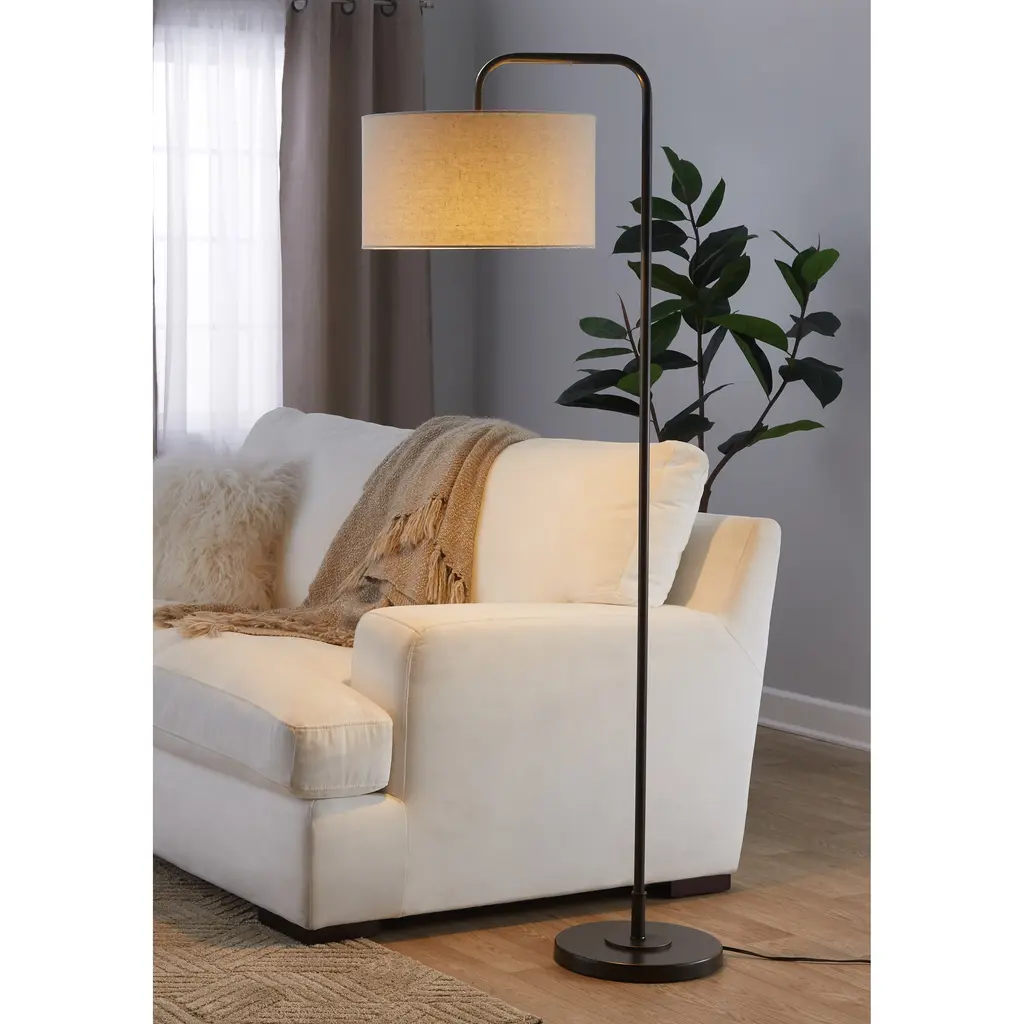 Porch & Den Sandpine Arc Floor Lamp - Oil Rubbed Bronze/natural Linen Shade