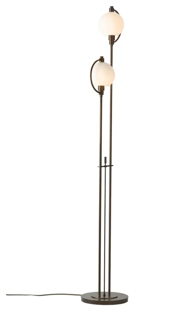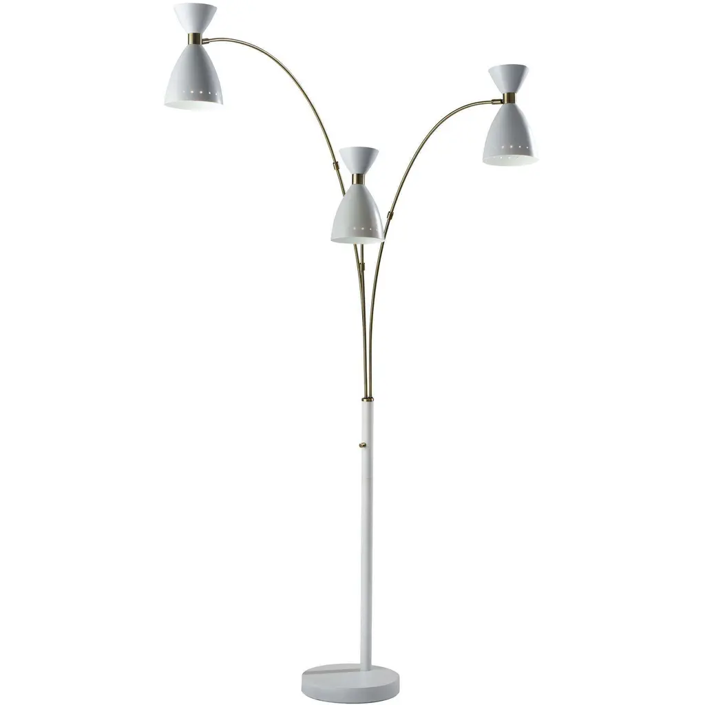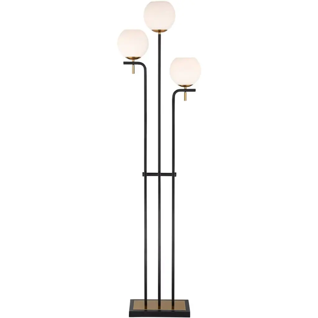 Mixed metal finishes, staggered heights and white globe shades combine to create the alluring Acadia floor lamp from the Possini Euro Design collection.
