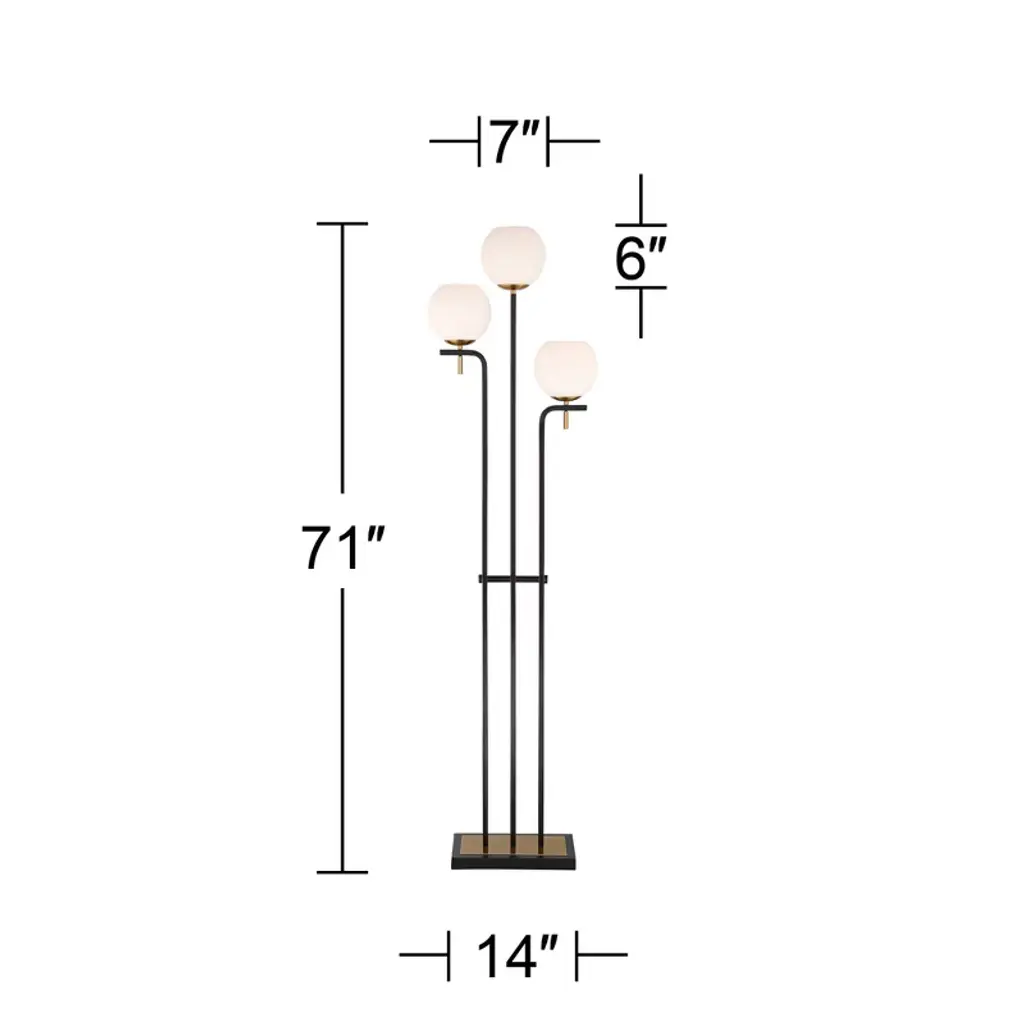 Possini Euro Design Acadia Modern Floor Lamp 71" Tall Black Warm Gold Metal 3 Light Frosted White Glass Globe Shade For Living Room Bedroom Office