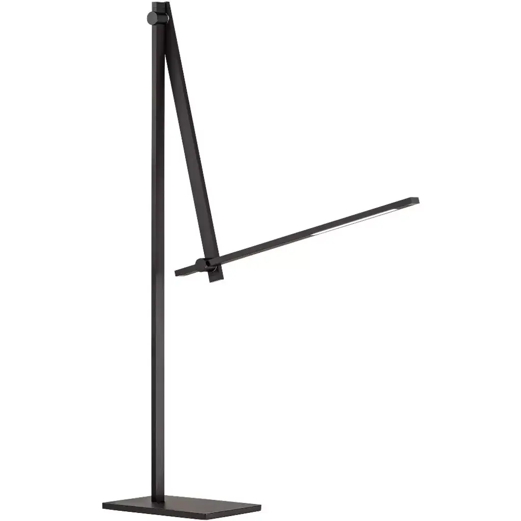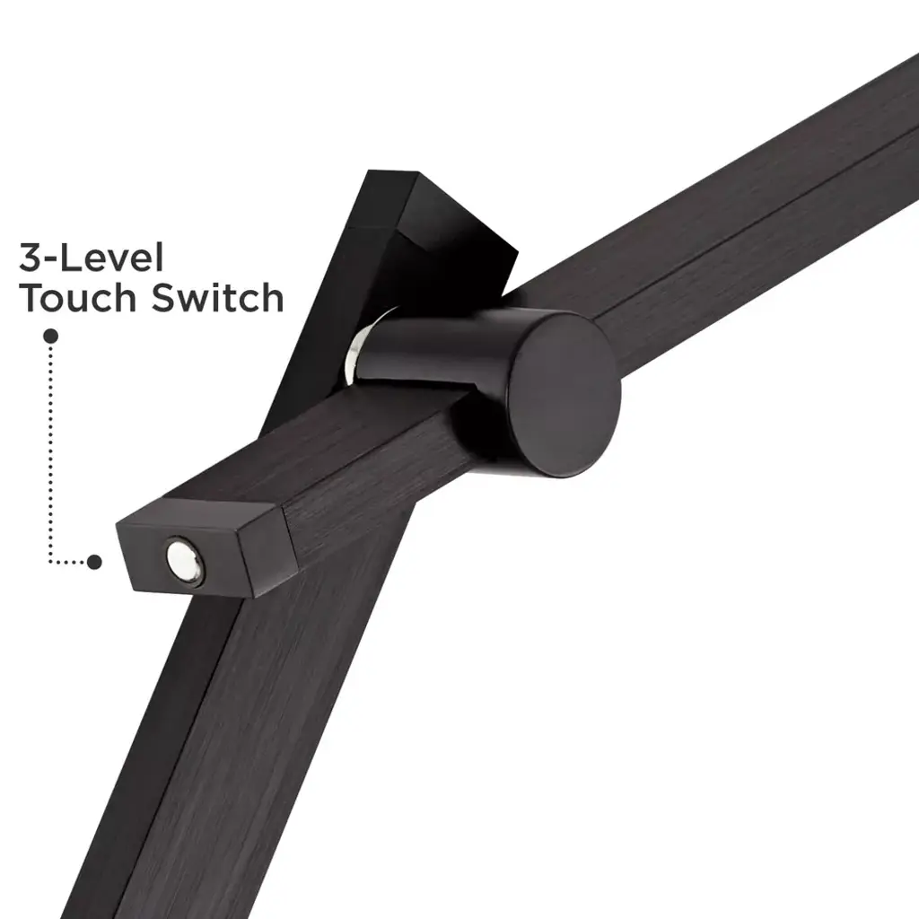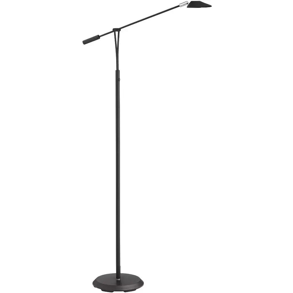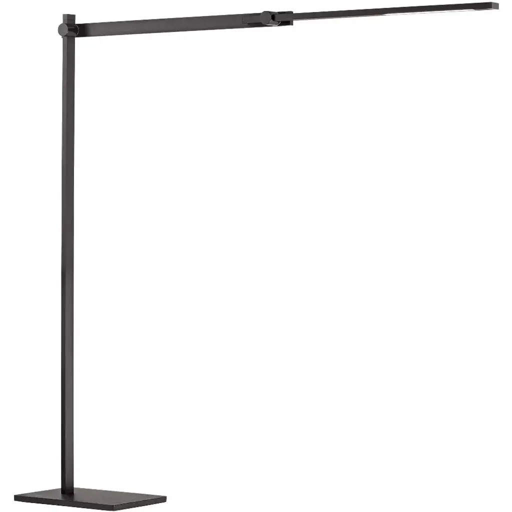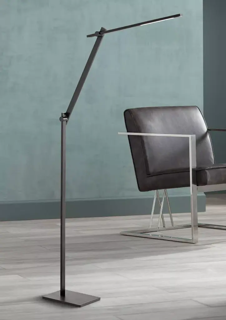 This energy-efficient LED floor lamp manages to look simple, elegant, and futuristic at the same time. It has arm segments that can adjust the overall height of the lamp, and a head with 360 swivel that can change the direction of the lighting. The anodized black finish gives it a subdued dark character. Design by Possini Euro Design®.