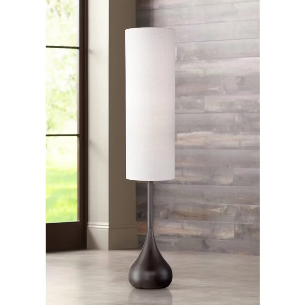 The droplet body is impressive with a bronze finish and fluid mid-century modern lines. The striking drum shade contributes to the vertical interest of this modern floor lamp design. Handy on/off foot switch for easy operation. From the Possini Euro Design lighting collection.