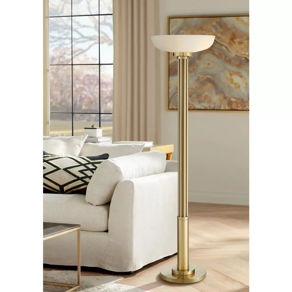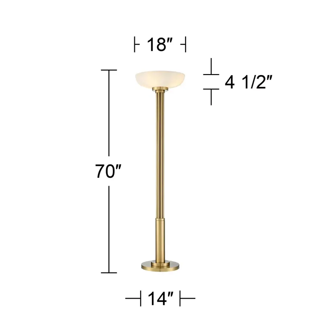 Possini Euro Design Modern Torchiere Floor Lamp 70" Tall Warm Antique Gold Metal Glass Shade For Living Room Reading Bedroom Office Uplight