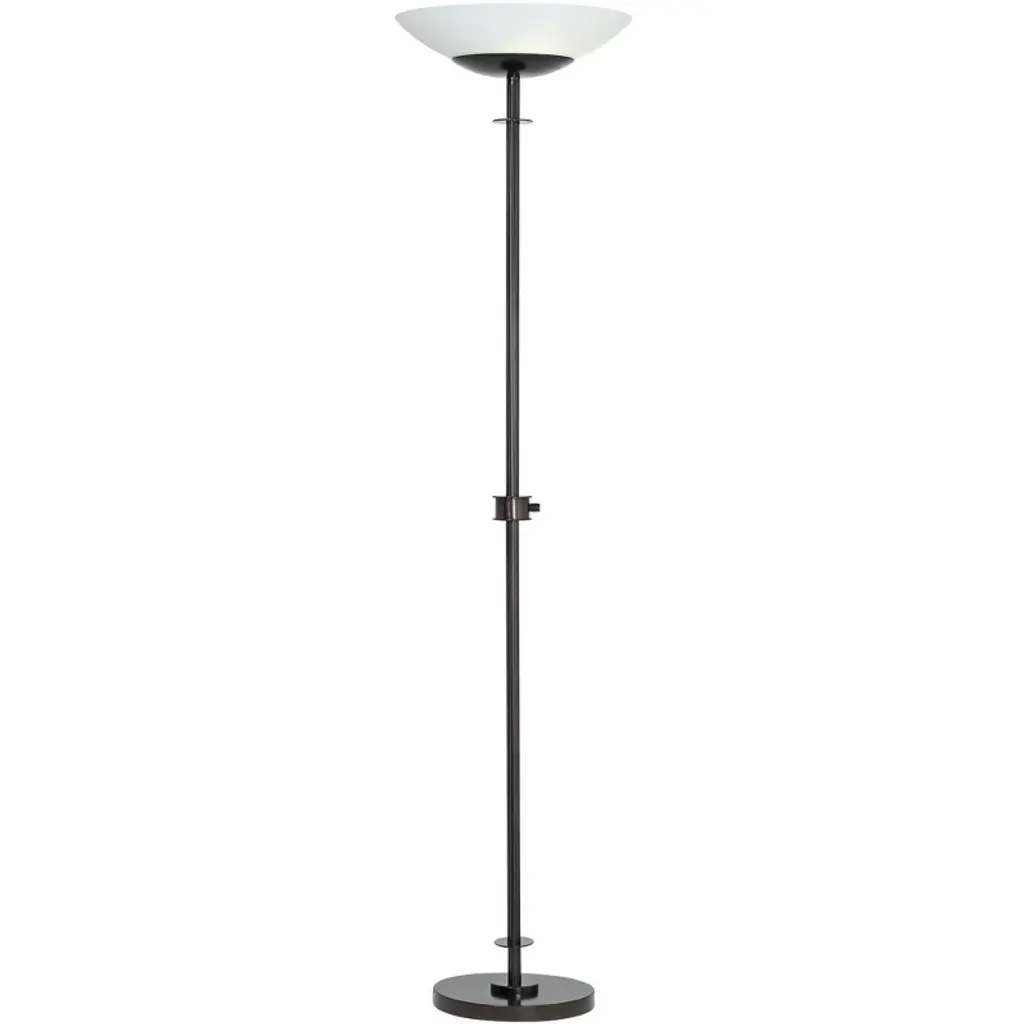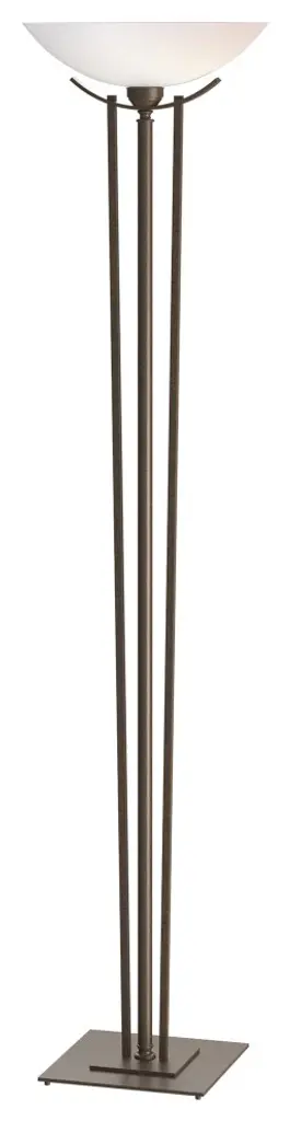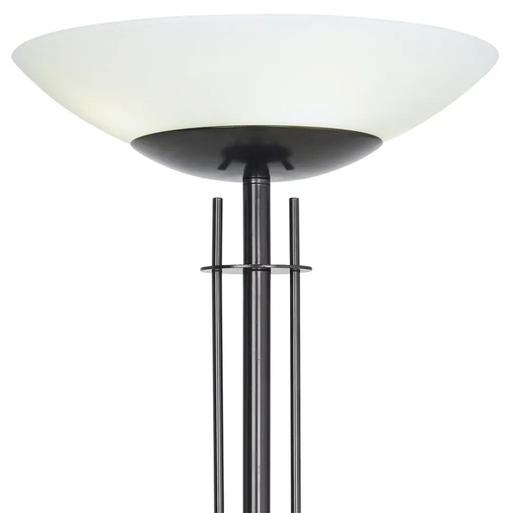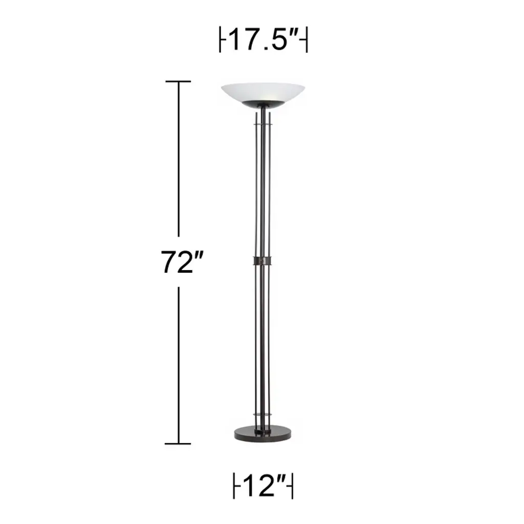 Light Blaster™ design means you won't have to sacrifice brightness to save energy. The Linear Light Blaster™ Torchiere from Possini Euro Design uses four powerful LED bulbs to produce a light output comparable to 300 watts of incandescent. This stylish torchiere floor lamp comes in a dark bronze finish. Up top, a frosted glass shade creates a warm glow. It's a great choice for general room lighting, for use in a hallway, or to brighten a dark room corner.