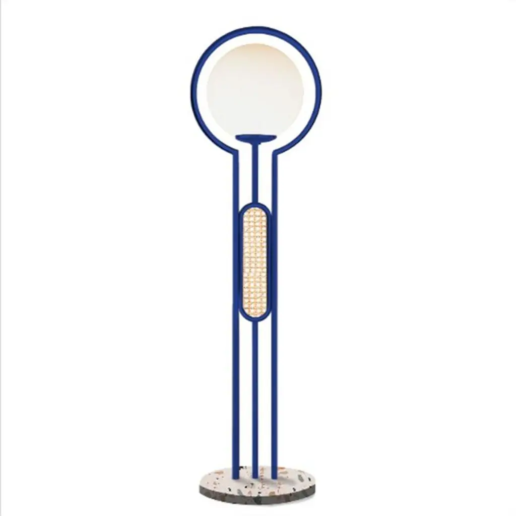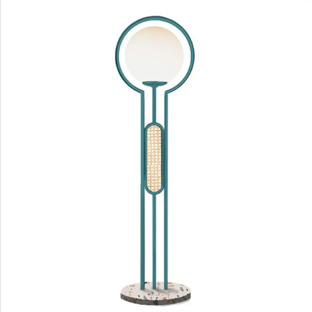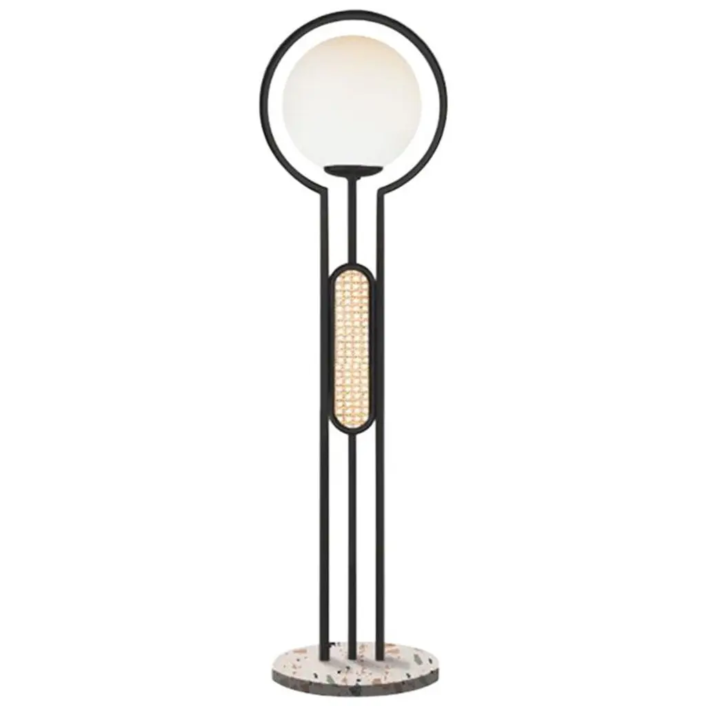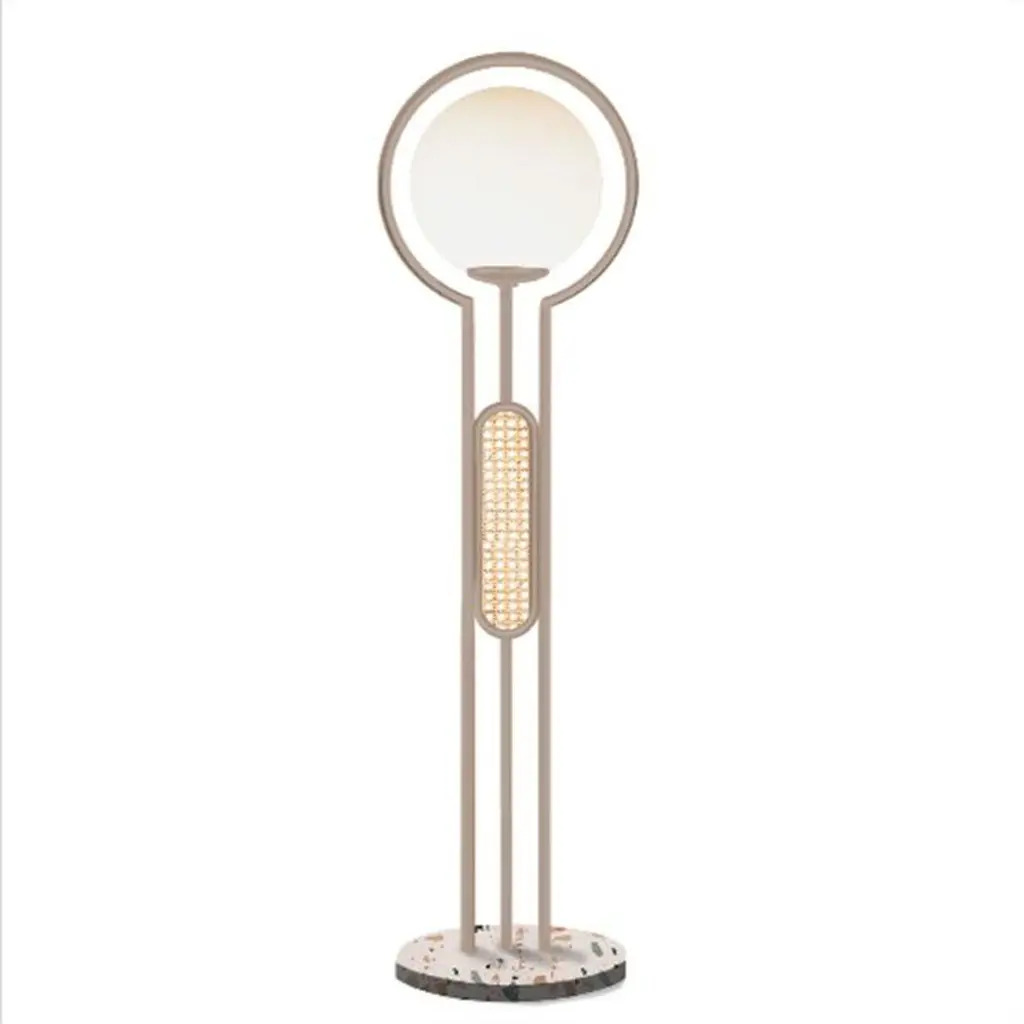 Post Modern Style Frame Floor Lamp Salmon Rose, Woven Cane And Terrazzo By Utu