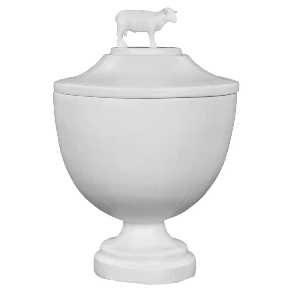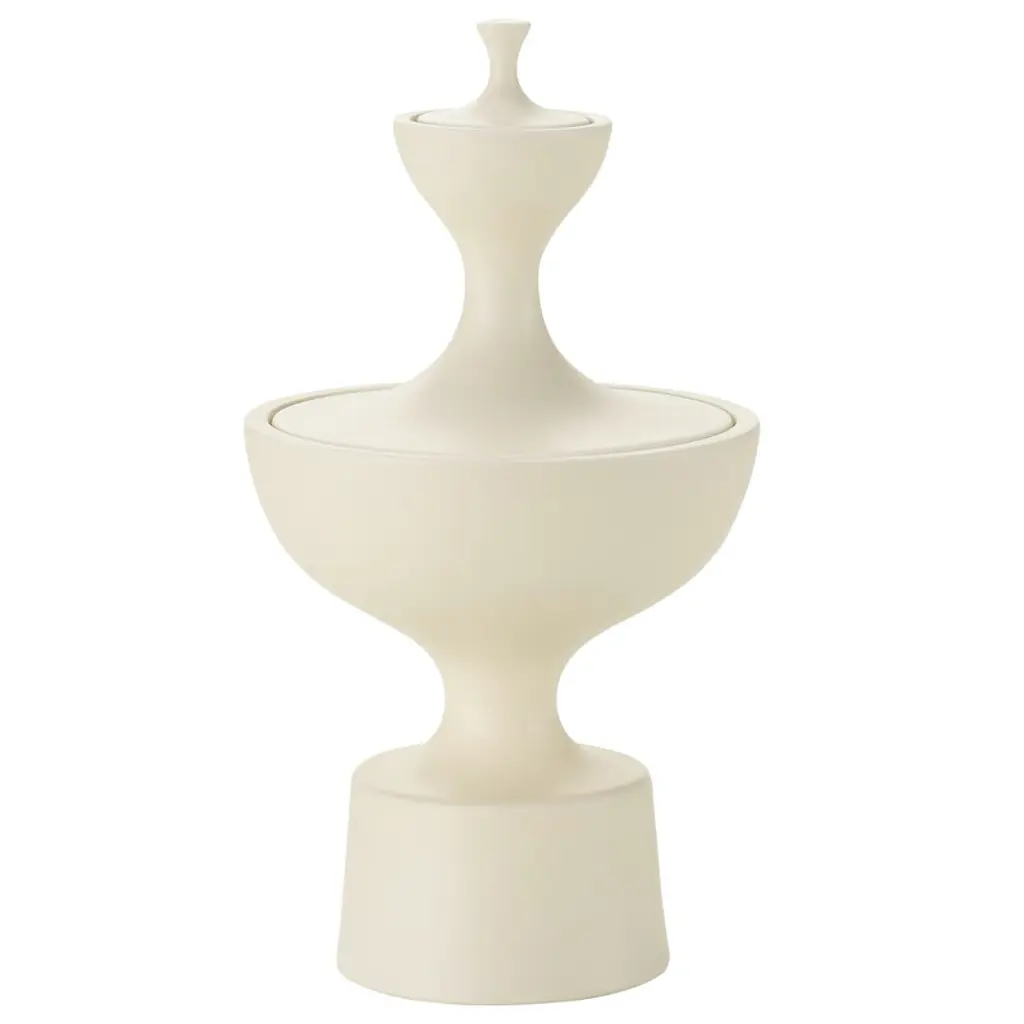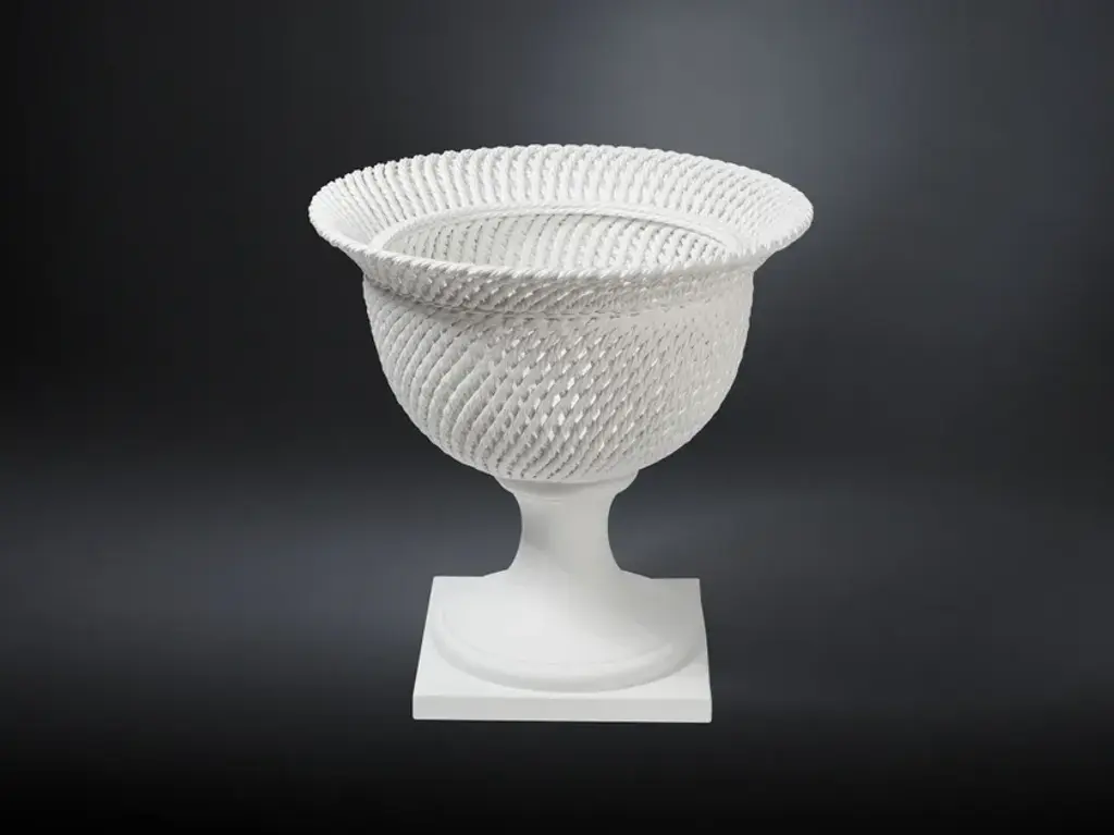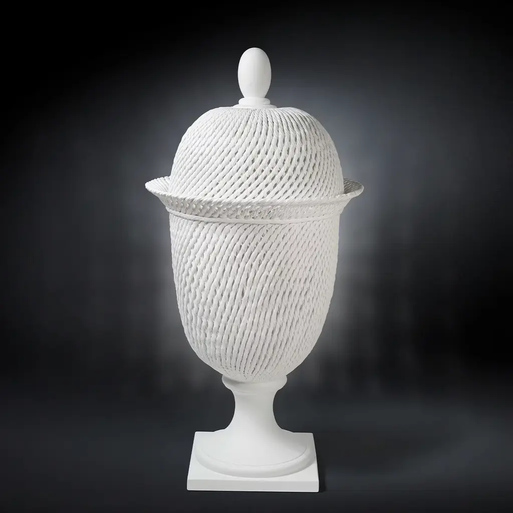 Inspired by Renaissance art, this splendid white ceramic lamp is named after renowned architect Andrea Palladio and features a classic potiche shape with a rounded lid and squared base. The entire surface is decorated with a woven motif that adds a unique textural quality to the design, whose majestic dimensions allow it to be used both as a floor and table lamp. Requires an E27 max 50W light bulb (not included).