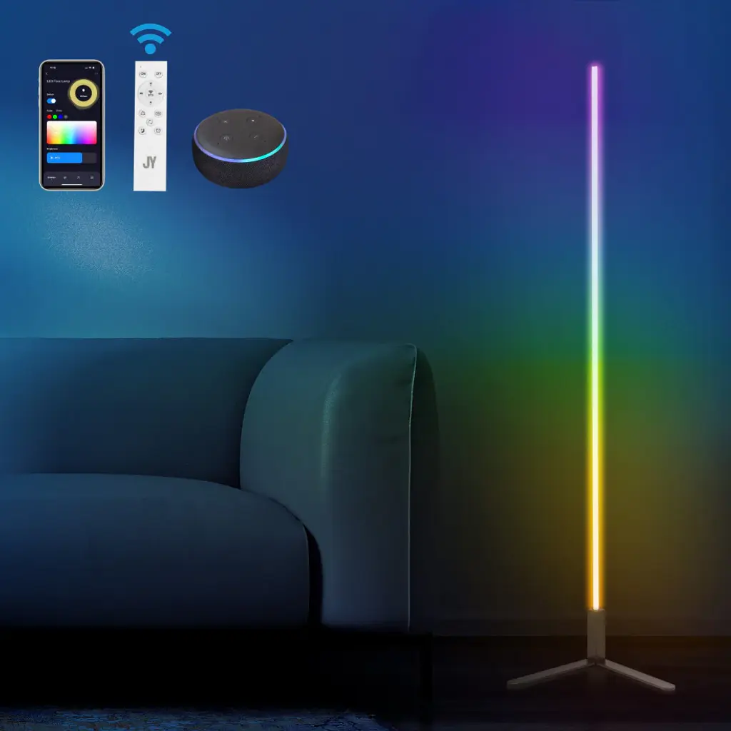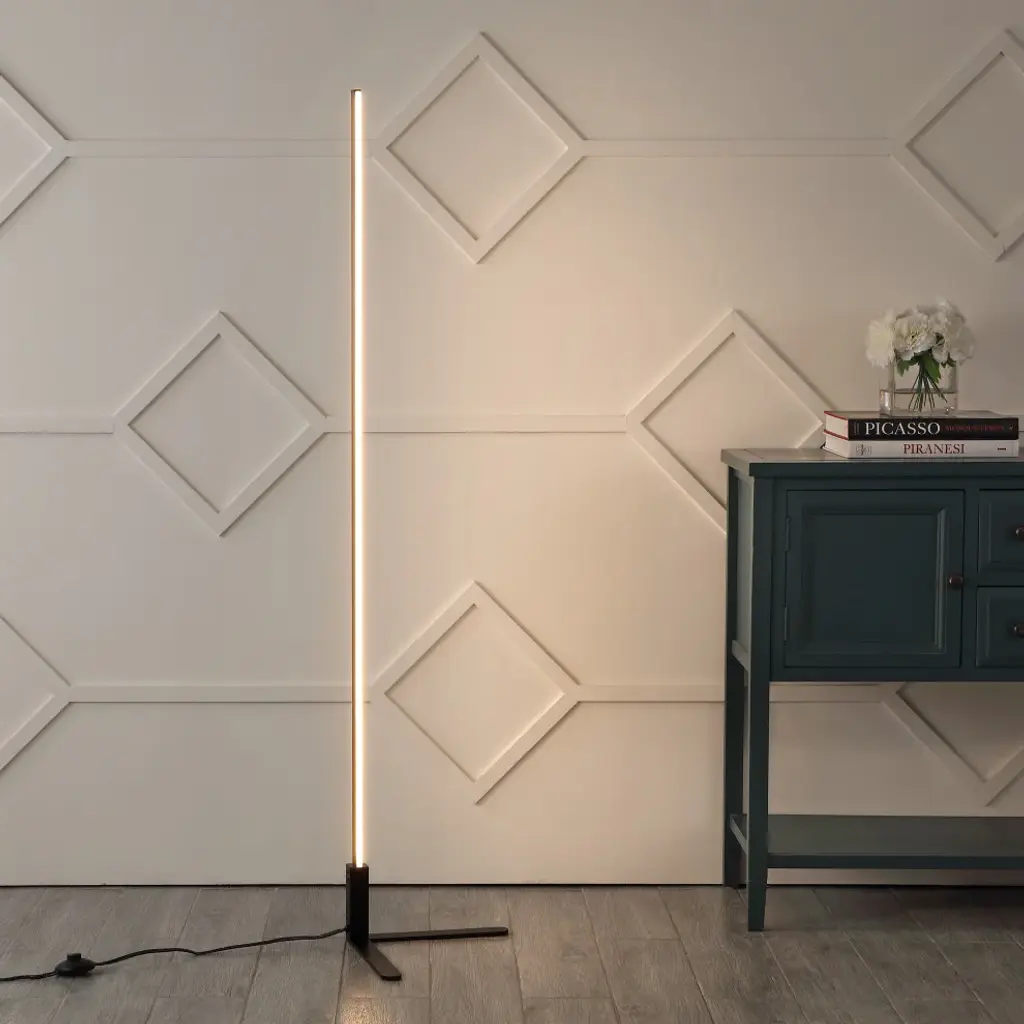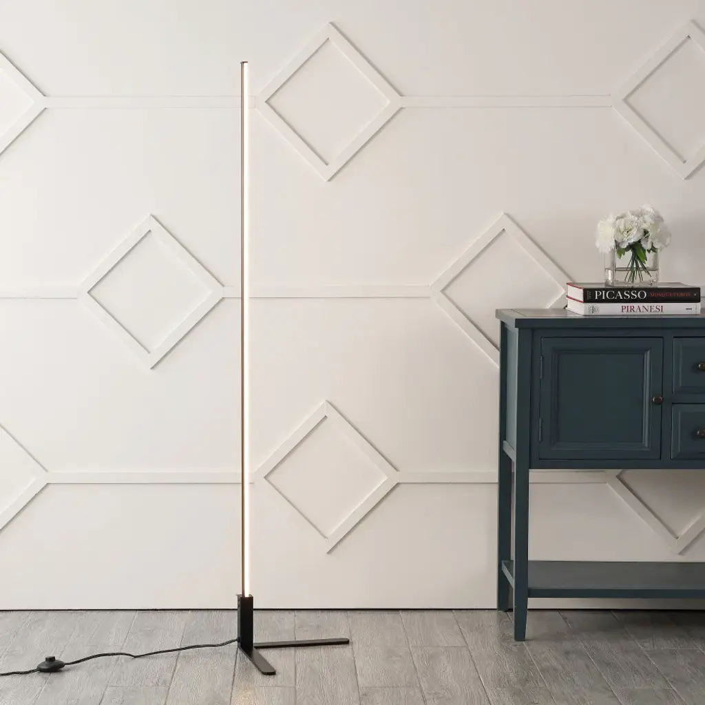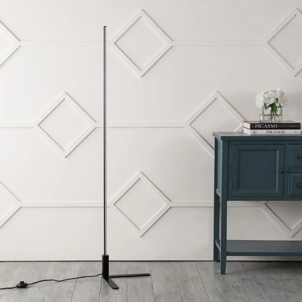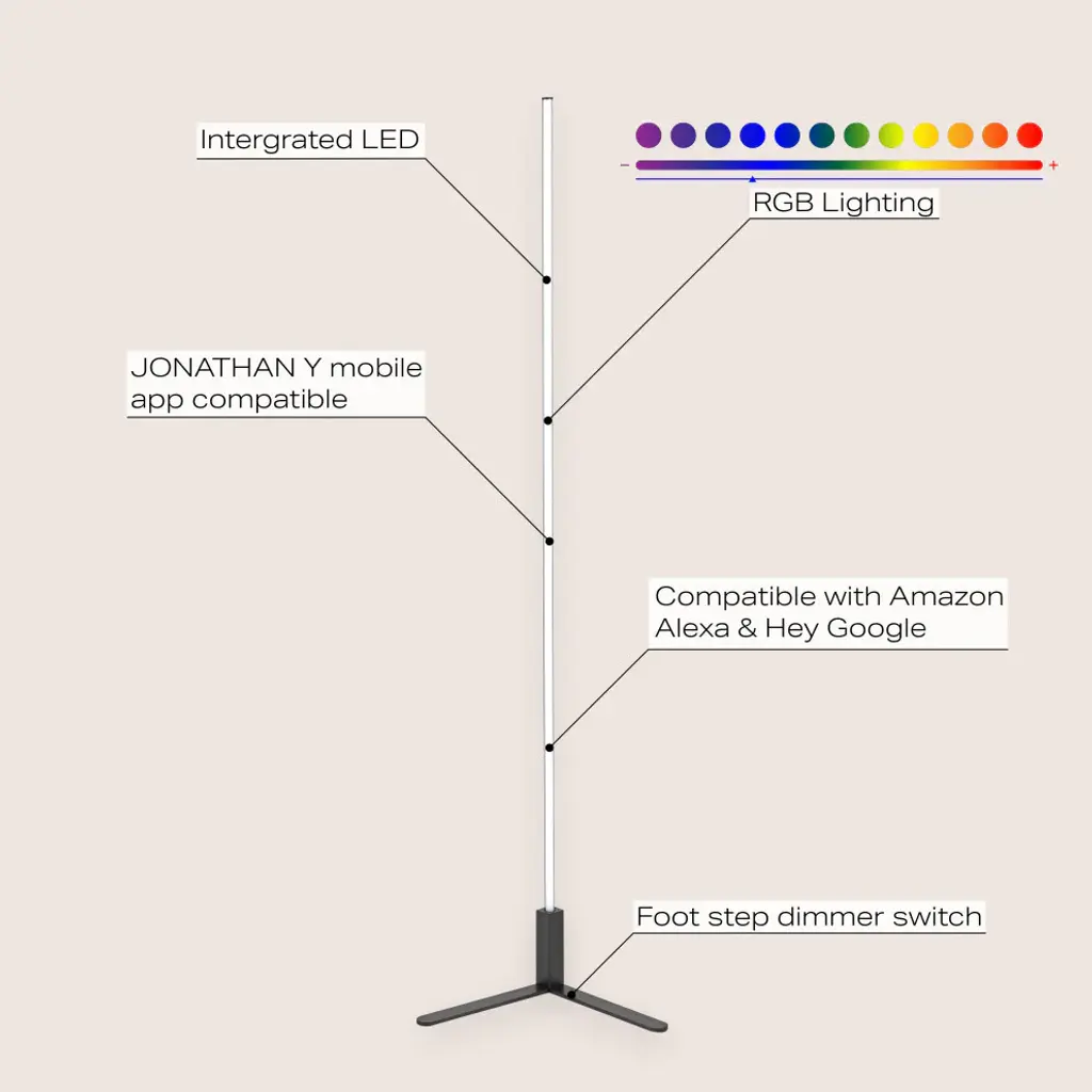 Our barely-there floor lamp adds a minimalist accent to the living room, dining room, bedroom or office. This contemporary glowing pole design creates bright, clear light. The energy-saving, integrated LEDs will last 15 years or more.-The metal base and pole have a modern black finish-Easy to use foot-step switch, or use the Jonathan Y app, Amazon Alexa or Hey Google for dimmable control-Sleek and narrow pole design tucks easily into small spaces and corners-Built-in LED lights, so no bulbs are required -Takes 0 bulbs and compatible with 12W-Color Temperature: 3000K + RGB-CRI: 80-Color: Black-Body Material: Metal-Base Material: Metal----Includes: One (1) lamp-Assembly Required-Lamp: 60.5 inches high x 11.75 inches wide x 11.75 inches deep-You see a lamp.We see a decorative work of art.A perfectly curved shade casts a dramatic shadow on a floor. Compatible with LED lightbulbs: as easy on the environment as they are on the eyes. The JONATHAN Y Lighting collection considers every detail from impeccably sourced materials to designer styling. And our prices are so attractive, weeve transformed a functional necessity into a fashion accessory.JONATHAN Y Lighting - a fashion revolution in home decor.