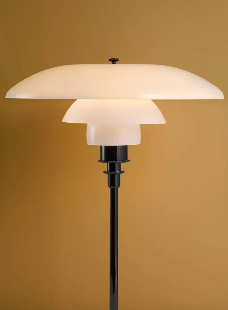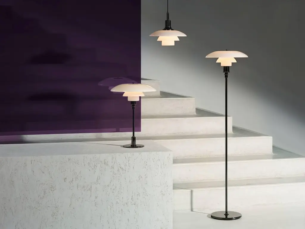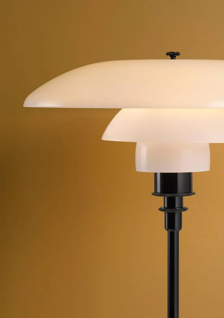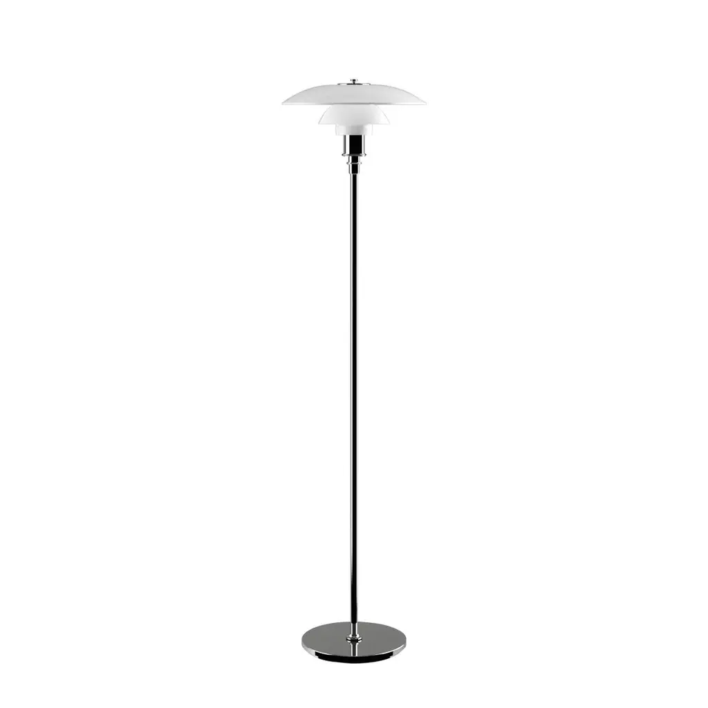 Poul Henningsen Brass and Glass 'PH 3½-2½' Floor Lamp for Louis PoulsenPoul Henningsen designed the original three-shade system in 1926-27, using a scientific approach to create glare-free light, soft shadows, and illumination where most needed. The 'PH 3 ½-2 ½' floor lamp is a modern yet classic addition with an extremely high level of detail.The 'PH 3 ½-2 ½' is executed in metallized brass, metallized black or high luster chrome-plated spun brass. The shades are mouth blown three-layer white opal glass, which is glossy on top and sandblasted matte underneath to provide soft, glare-free, and uniform light distribution.Price is per item. Available in unlimited quantities in three finishes. Also available as a table lamp in a separate listing. This listing is for the 'PH 3 ½-2 ½' floor lamp in brass and glass. In-stock lead time 1-3 days. Out of stock lead time up to an additional 8 weeks or more. Please note that inventory can change at any time. For time-sensitive orders, please inquire prior to purchasing.UL listed. Accommodates a single A-19 medium bulb with 15 watt equivalent. Bulb not included. Made to order.All sales final.