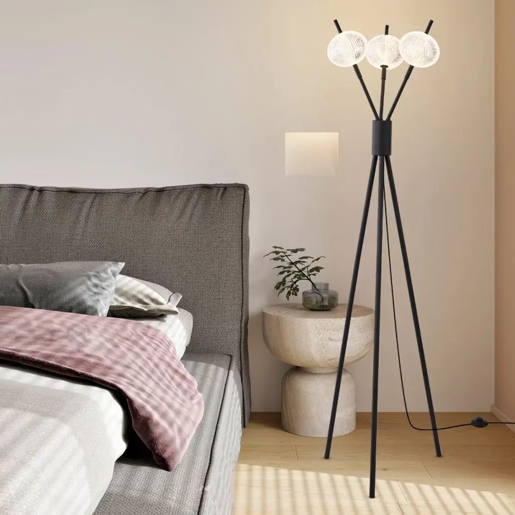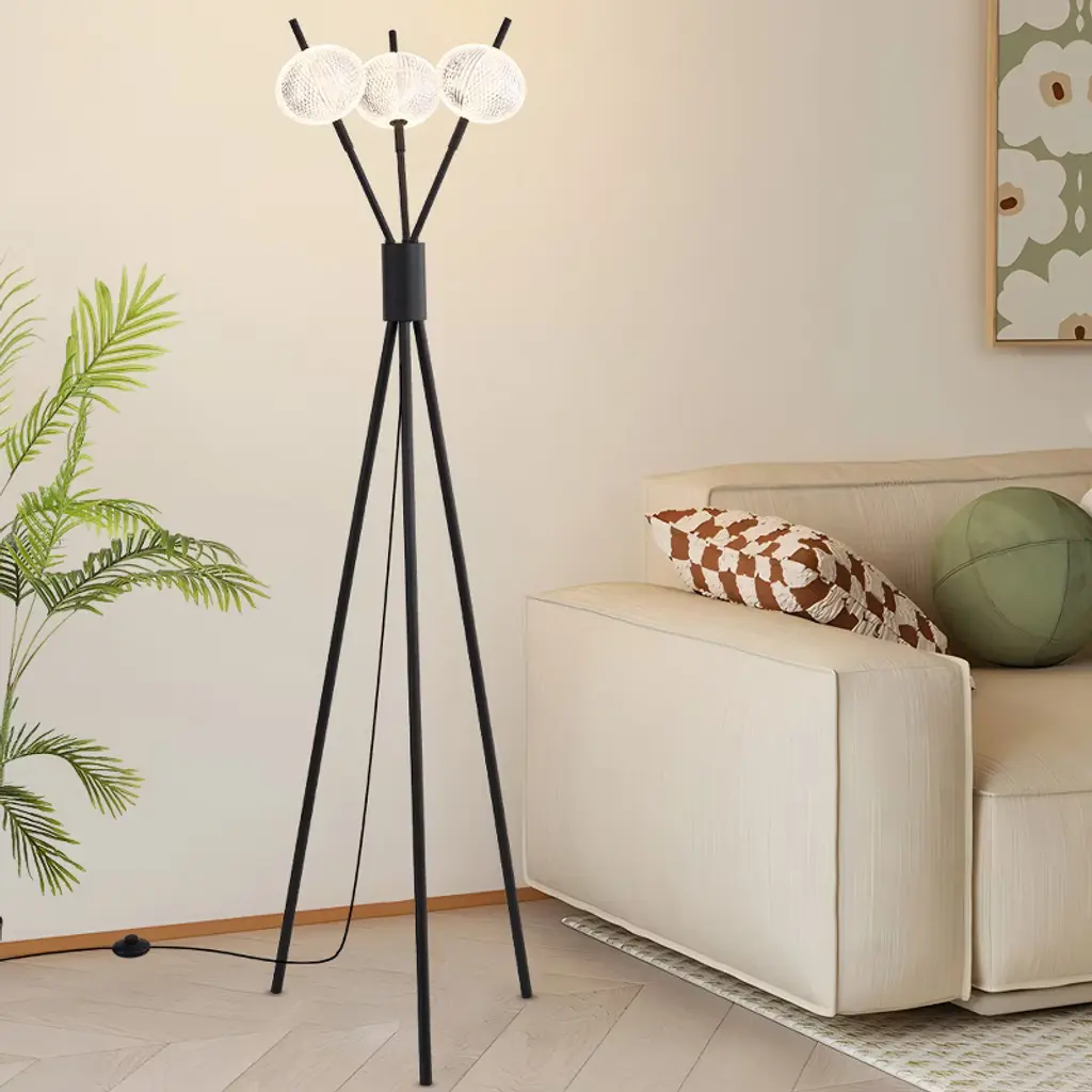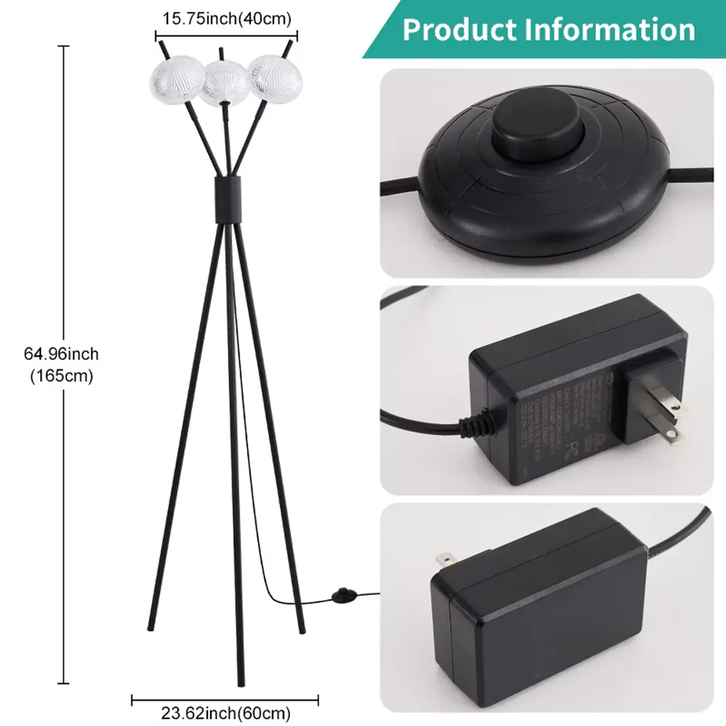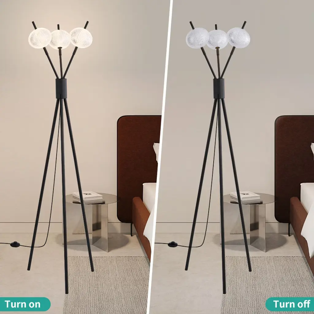 Elevate your space with this sleek metal tripod floor lamp featuring a high-quality LED light source that provides flicker-free illumination to protect your eyes during reading or relaxing. The acrylic lampshade offers excellent light diffusion while maintaining a modern aesthetic. Practical touches include a foot switch for easy on/off control and a sturdy three-legged base that blends minimalist style with stability. Perfect for creating a cozy reading nook or adding warm ambiance, this unique piece is sure to enhance any space you have with its elegant design and minimalist style.