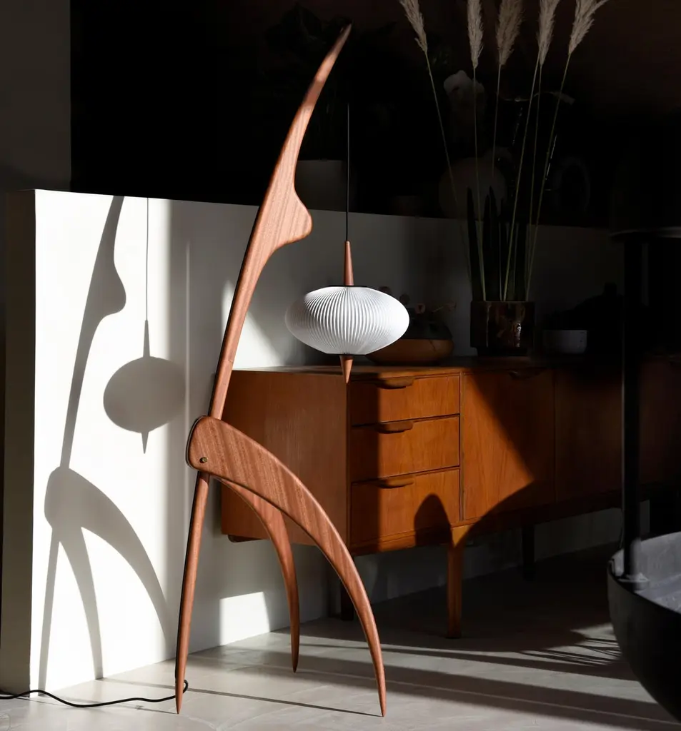 Praying Mantis Floor Lamp In Natural Mahogany By Rispal