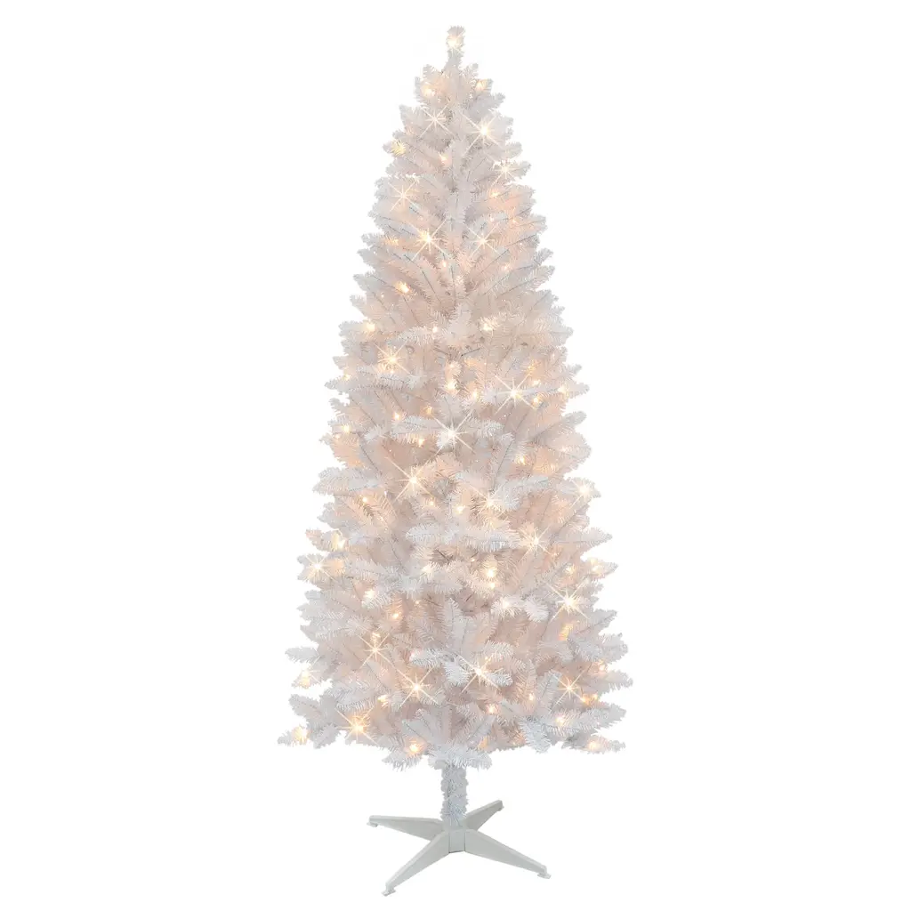 Pre-Lit Slimtinsel Pine Artificial Christmas Tree - Silver - Clear Lights - 6.5 Foot