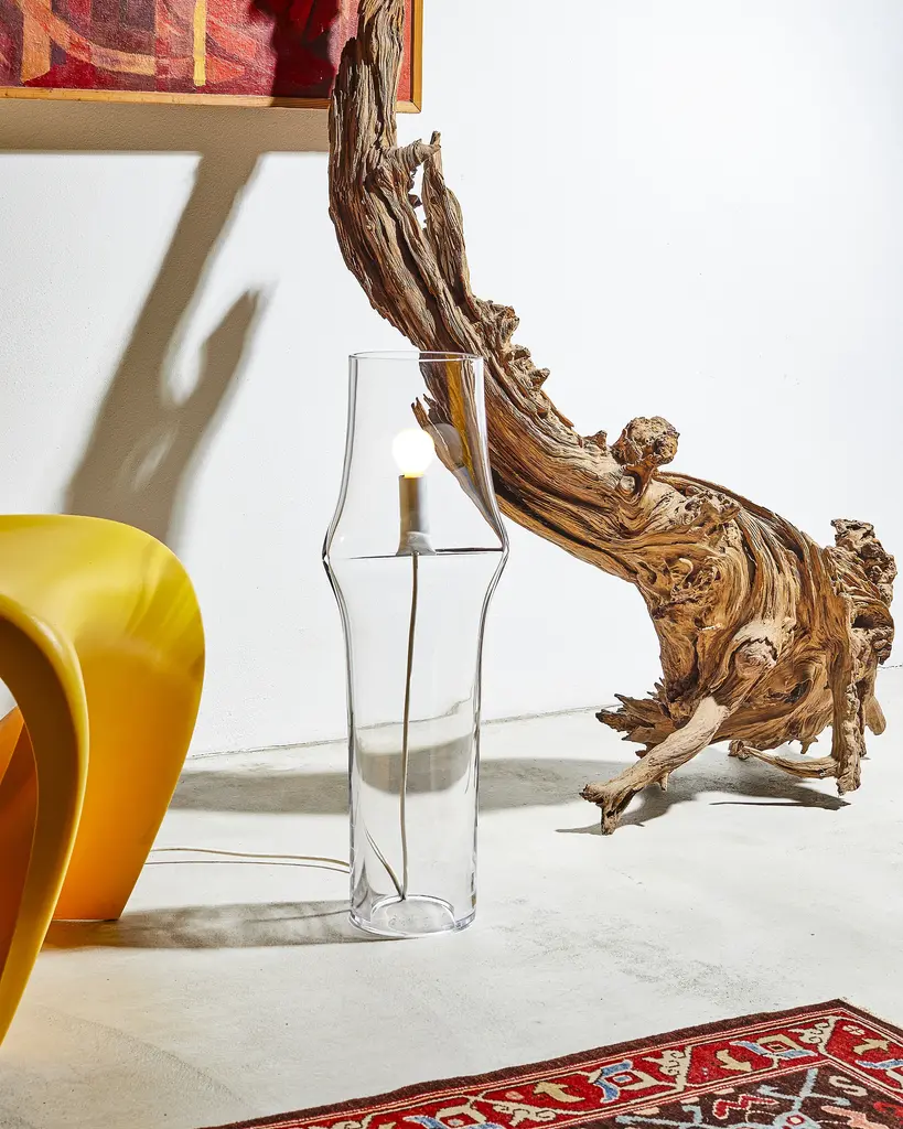 One of influences which shaped modern Japanese design was the Mingei (Folk Crafts) Movement. It emphasized the pursuit of practical beauty as well as the universal appeal of everyday craftwork design. Still present in contemporary Japanese design, these approaches affected also the design of Press Lamp. Here glass tubes are pressed as though they have been pinched, and the light source is fitted into the narrowed space. It does not rely on a metal form, the compression of the glass produces a soft, organic form and imbues each lamp with a singular appearance. Features