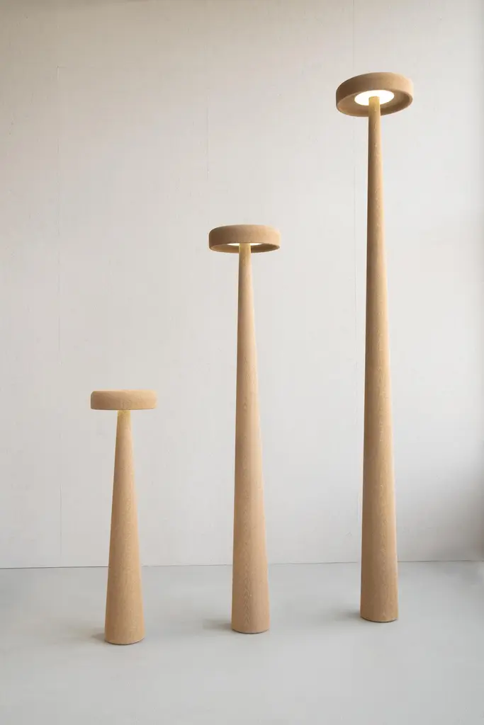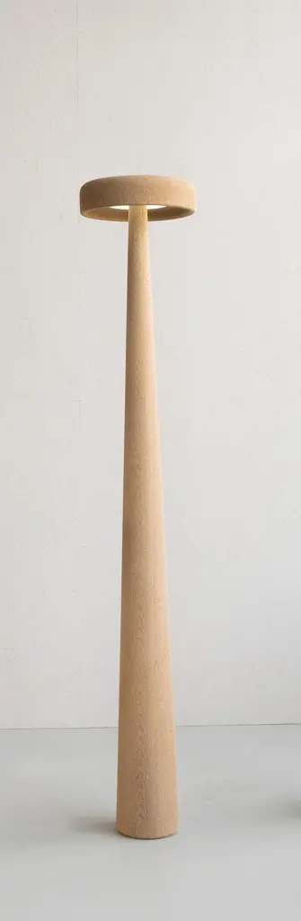 Printed Nature Econit Wood 245 Floor Lamp by Harry ThalerDimensions: Ø 45 x H 245 cm.Materials: Econit wood.This lamp is available in five different sizes. All our lamps can be wired according to each country. If sold to the USA, it will be wired for the USA, for instance. Please contact us."In addition to proposing ecological and sustainable design, which has always been an essential part of my practice, econitWoodTM material granted my imagination with limitless shapes and prospects, which was an invigorating creative boost for me: I definitely had fun,” says Harry Thaler about the Printed Nature collaboration.Econit Wood redefines material innovation by repurposing wood leftovers from sawmills and timber harvesting for interior architecture. This novel material system emphasizes ecological responsibility, regional sourcing, and fire safety while interfacing with contemporary and digital design languages.By employing 3D printing technology, the material is turned into meticulously defined geometric shapes. This technique represents a significant advancement in sustainable design, preserving the wood's inherent CO2 absorption capacity and broadening its functional and aesthetic possibilities.A key advantage of Econit Wood technology lies in its zero-waste philosophy. In contrast to conventional manufacturing, which often leads to significant material wastage, this approach ensures the effective use of every particle of raw material without waste generation.Econit Wood elements are made-to-order, eliminating unnecessary inventory and minimizing the environmental footprint often associated with mass production. This crafting process is a synthesis of freedom and precision, enabling the creation of intricate designs that would be hard to achieve with traditional woodworking methods.Harry Thaler is a designer whose work reinterprets fundamental design typologies by combining high quality and traditional craftsmanship with innovative shapes and materials. Trained as a goldsmith, whose background strongly influences his design process, he earned his MA in Design Products from the Royal College of Art (2010). In the same year, Thaler opened his studio in London and developed the Pressed Chair, which immediately became very well known. Thaler works with international companies such as Nils Holger Moormann, Pulpo, Davide Groppi, Monocle, Leaos, and Olev Light. His field of activity also includes the design of indoor and outdoor spaces as well as projects in the field of architecture. His work has been exhibited internationally and has been awarded numerous prizes. Harry Thaler now lives in Merano (Italy), where he converted a disused silo tower into his studio. From 2016 to 2019, Thaler was part of the Faculty of Design and Arts at the Free University of Bolzano.