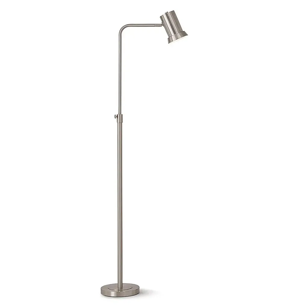 A takeoff on our EOS collection, this 3-watt LED clip lamp is made of metal with convex glass magnifier bulb shield. This lamp has a metal shade with a decorative light band accent, as well as a metal gooseneck for adjusting light height and direction. The shade measures 2 inches in length and 1.25 inches in diameter at the lens. Rubber push switch on pole 17.5" gooseneck extends height from 45" to 56" Base: 8" diameterCRI: 75; Color Temp: 4000K; 250 lumensBulbs only included for LED lighting