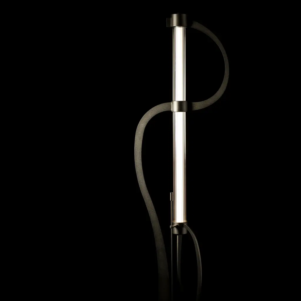 An elegant form meets cutting-edge innovation in the fine craftsmanship of the Pulse Floor Lamp by Hubbardton Forge. Hand-forged steel plates gracefully arc and curve around a single LED tube to conduct a soft illumination on all it surrounds. Shown in Oil Rubbed Bronze finish with Clear glass