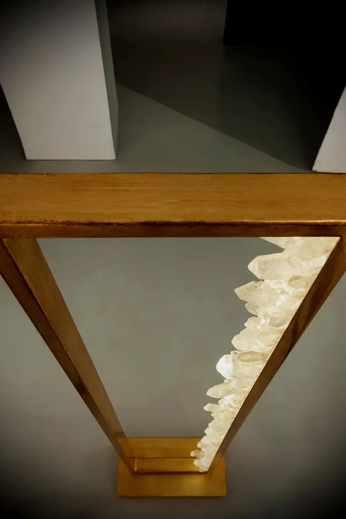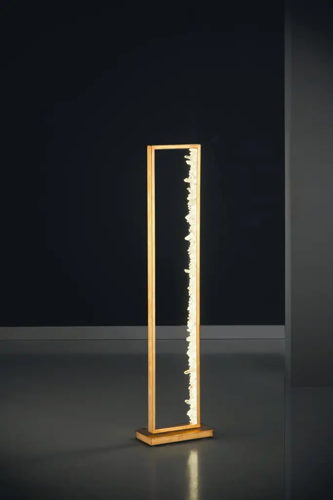 Quartz pendant lamp by Aver Dimensions: 40 x 5 x 158 cmMaterials: white quartz, silver leaf, gold leaf, brass leaf, copper leaf, pink gold leaf.Lightning: 01 x LED 25W 2000LMDesigned by Waldir Junior.