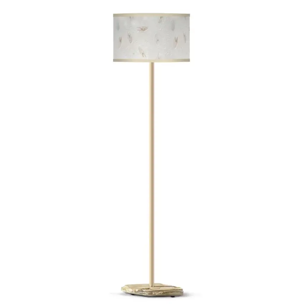 The Quary Floor Lamp from Seascape Lamps starts with a remarkable foundation – a cast cement base that resembles natural stone without the excessive weight. From this solid platform rises a wooden stem wrapped in alder veneer, creating a natural transition between materials. The handmade paper shade crowns the lamp with a light-filtering surface that's been individually printed by artisans. When lit, the lamp provides just enough brightness for reading or conversation without overwhelming the space. It fits naturally beside sofas, next to reading chairs, or in home offices.