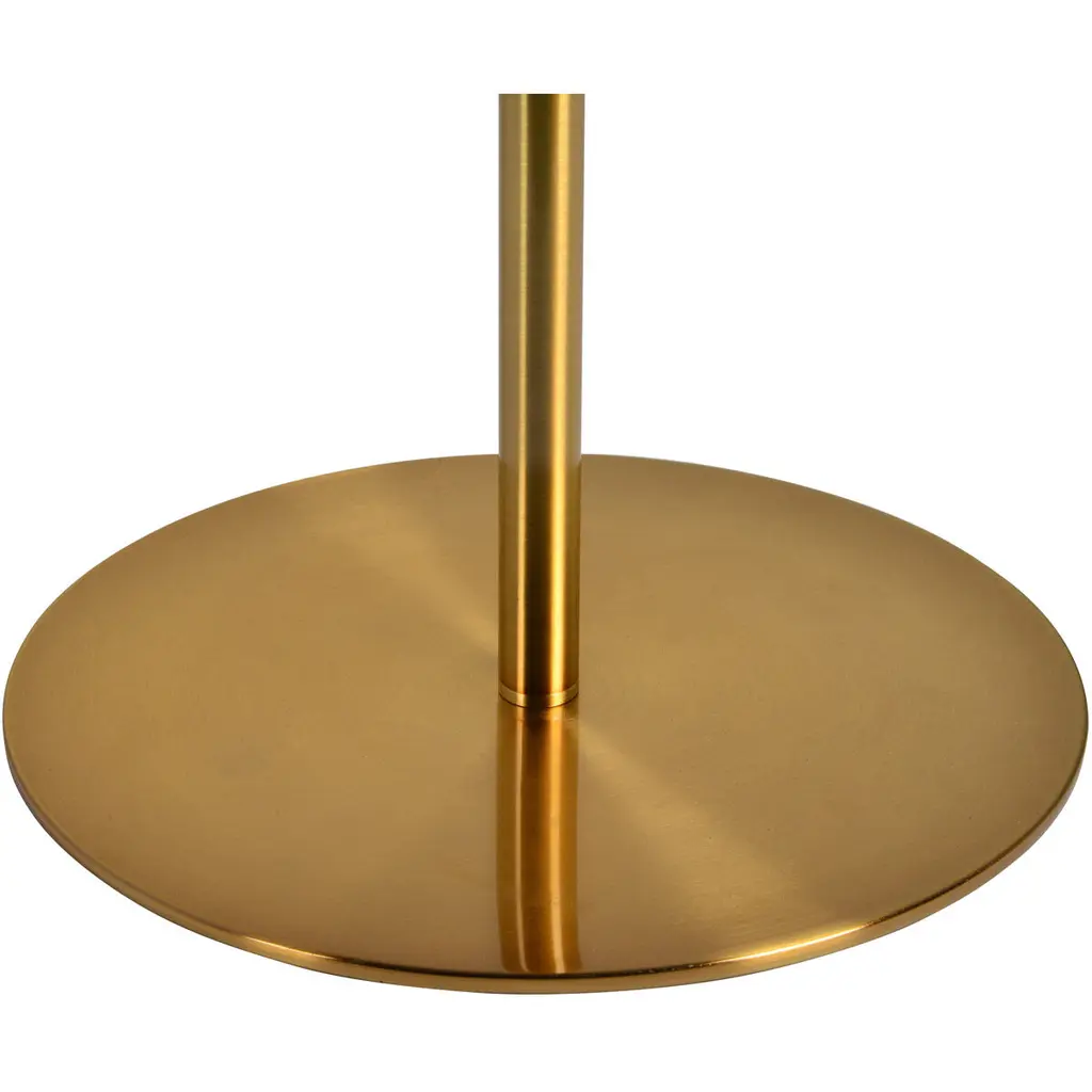 The understated silhouette of this modern floor lamp is simple, yet subtly chic. The modest lines of the lamp base boast a slim iron stem centered by a circular metal stand. Topped with a clean white cotton drum lampshade, the decorative light fixture is plated with an antique brass finish that adds a glamorous element to everyday furnishings.