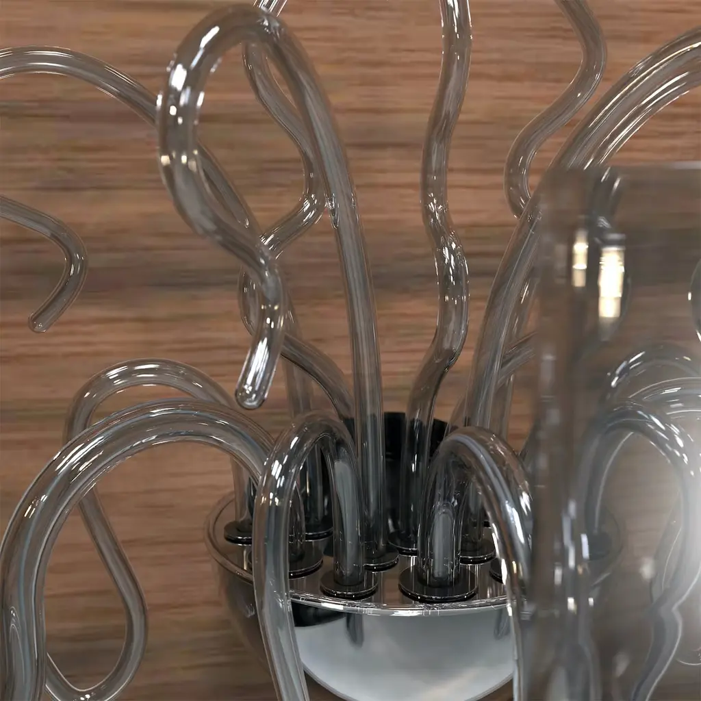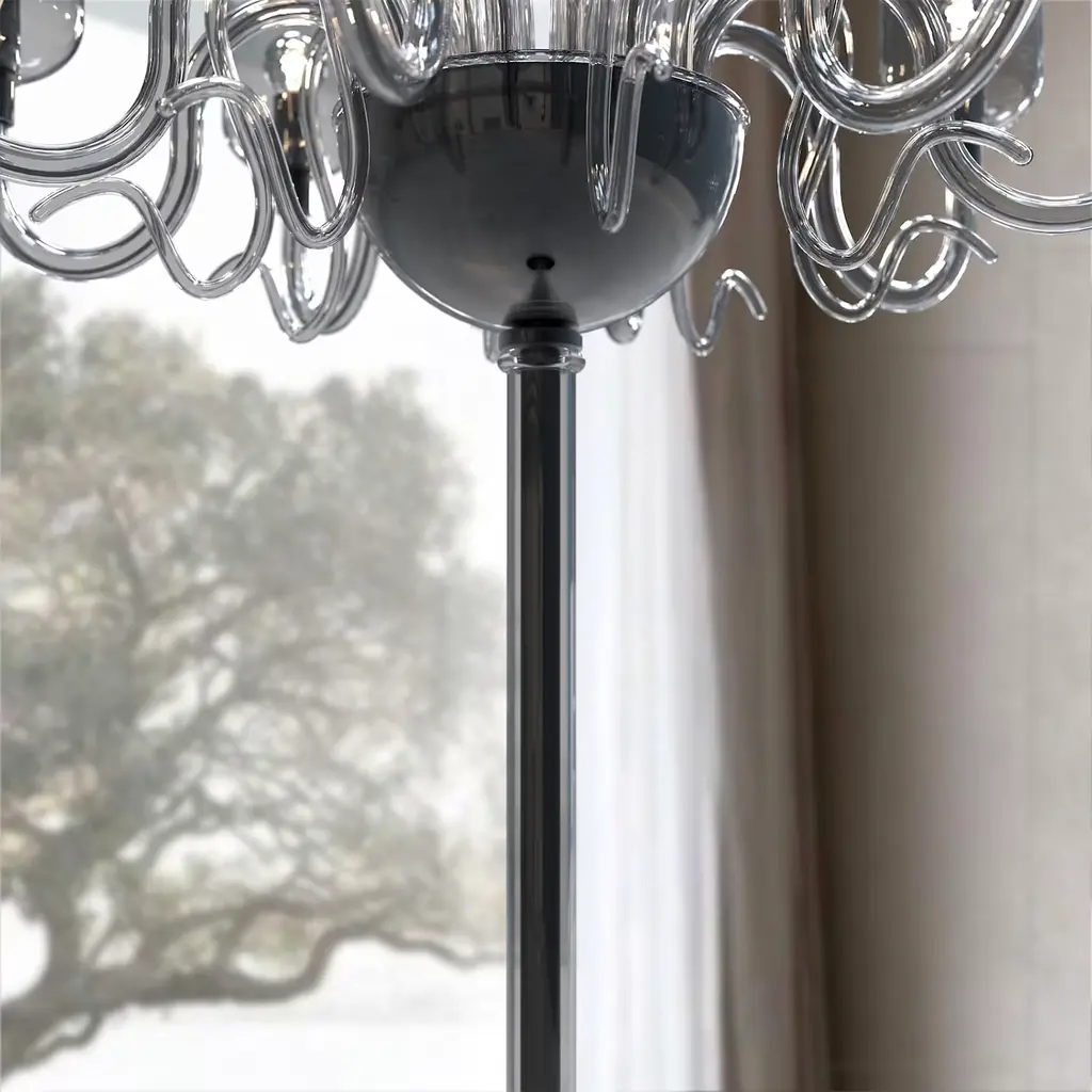 This Contemporary 8-light floor lamp is entirely handmade in our furnace in Murano Island by master glassmakers according to ancient and secret traditions handed down from father to son since 1300. For centuries, Murano glass has been the most famous glass in the world and one of the most desired Made in Italy products for furnishing luxury environments. Since the dawn of time, Murano glass chandeliers and furnishing objects have decorated the most prestigious homes and have given an unmistakable light to any room. Any of our Murano Glass lighting fixtures is always unique and unrepeatable, the result of artisan tradition and advanced industrial techniques. For this reason its origin is certified by the Trademark of the Italian law “Vetro Artistico® Murano”. GLASS COLOR: Gray, METAL FINISHING: Black Nickel , CUSTOMIZATION: Customizable in glass colors, metal finishings