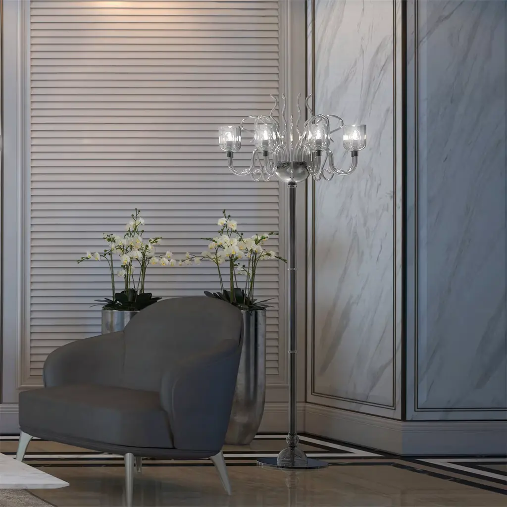 Raffaello 8-Light Gray Murano Glass Floor Lamp