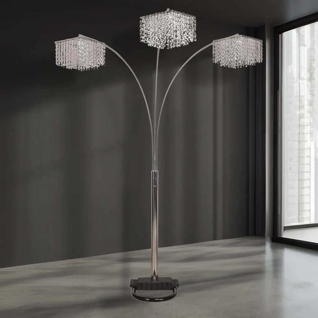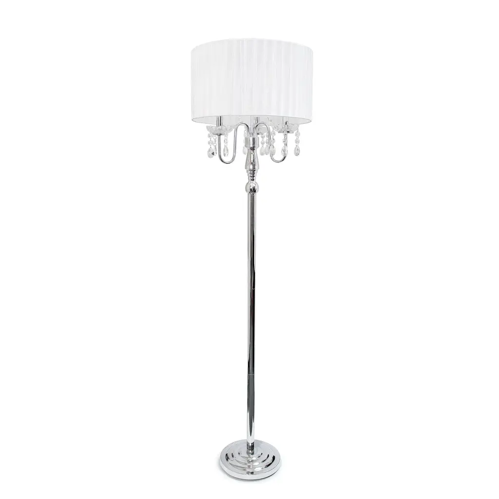 This elegant floor lamp is a minimalist approach to the classic chandelier design. This sleek floor lamp brings a touch of understated glamour to your space, with subtle crystal accents that catch the light without overwhelming the room. Perfect for creating a cozy reading corner or adding a sparkle of interest to your favorite nook. Weight 34.600 lbs. (15.57kgs.)