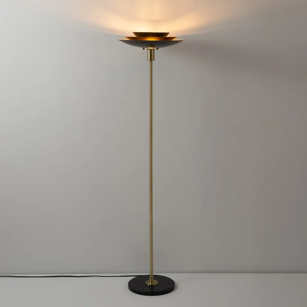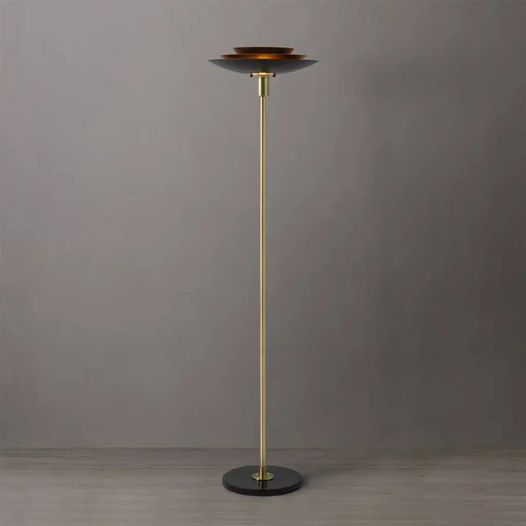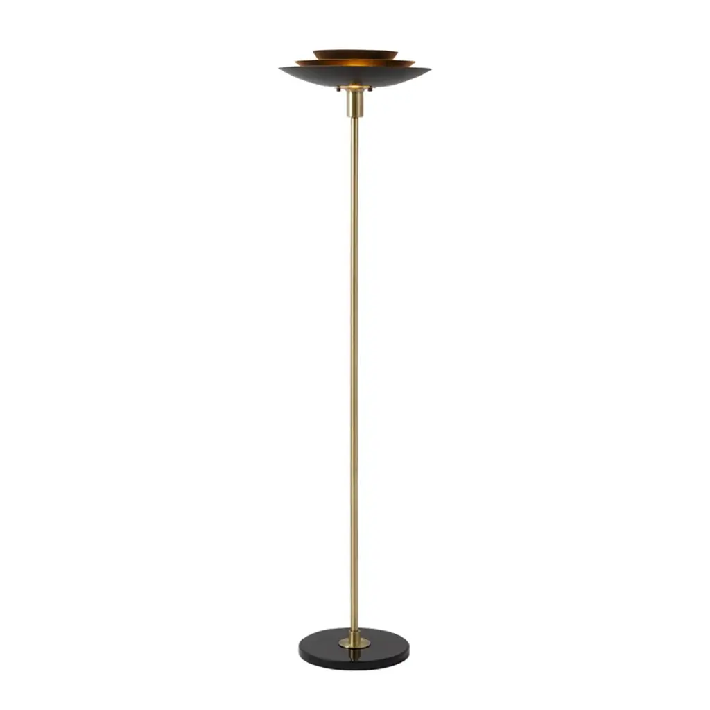 Rancho Mirage Torchiere Floor Lamp - Matte Black & Gold-Leaf Shade, Weathered Brass, Black Marble Base