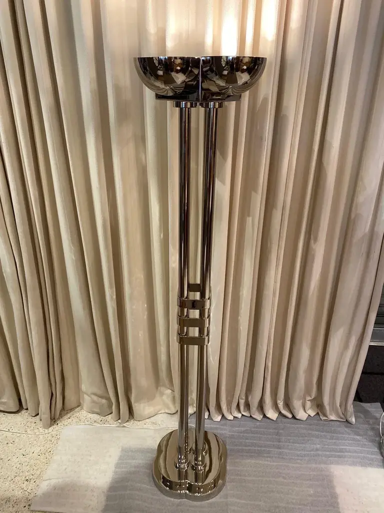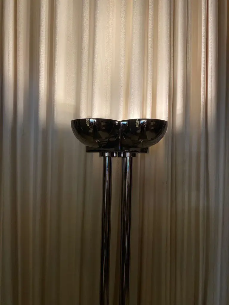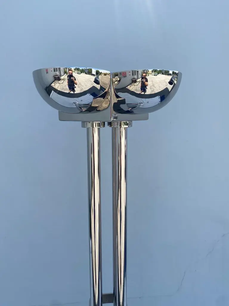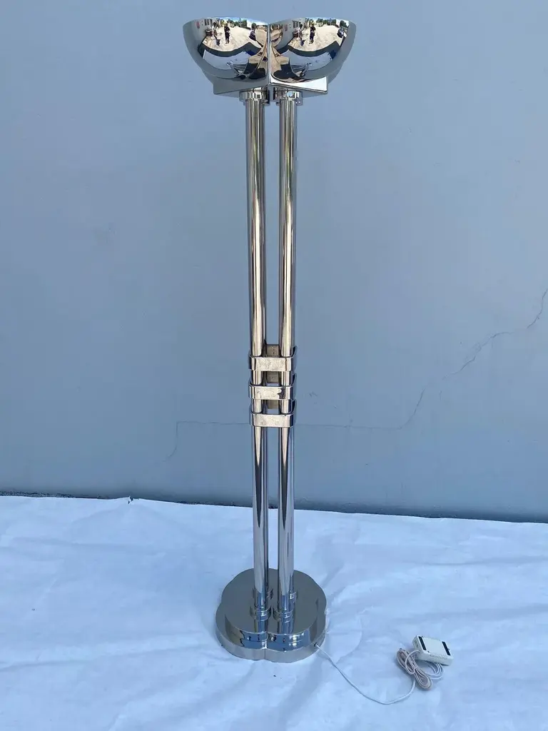 Rare Large Art Deco Period Polished Chromed Torchiere Lamp - Two Available