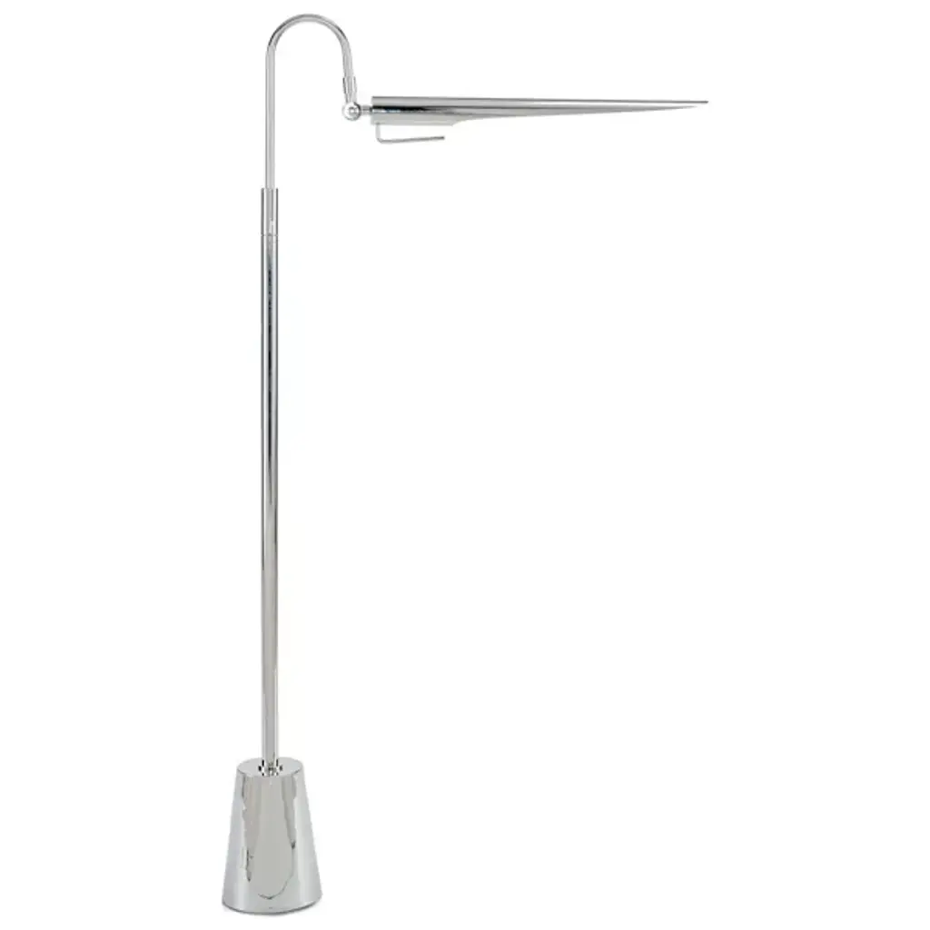 Elongated elegance. The Raven Floor Lamp by Regina Andrew represents a collection of innovative concepts, including a bold conical base – weighted to give stability with style – and an artful hairpin neck reminiscent of a vintage streetlamp. As for the light itself, this lamp offers pointed grace with a flair for futurism.